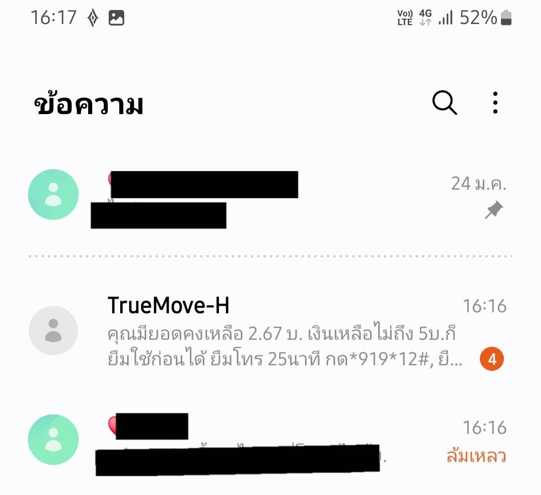 ส่งข้อความไม่ได้แต่เงินถูกหักของTrueMove