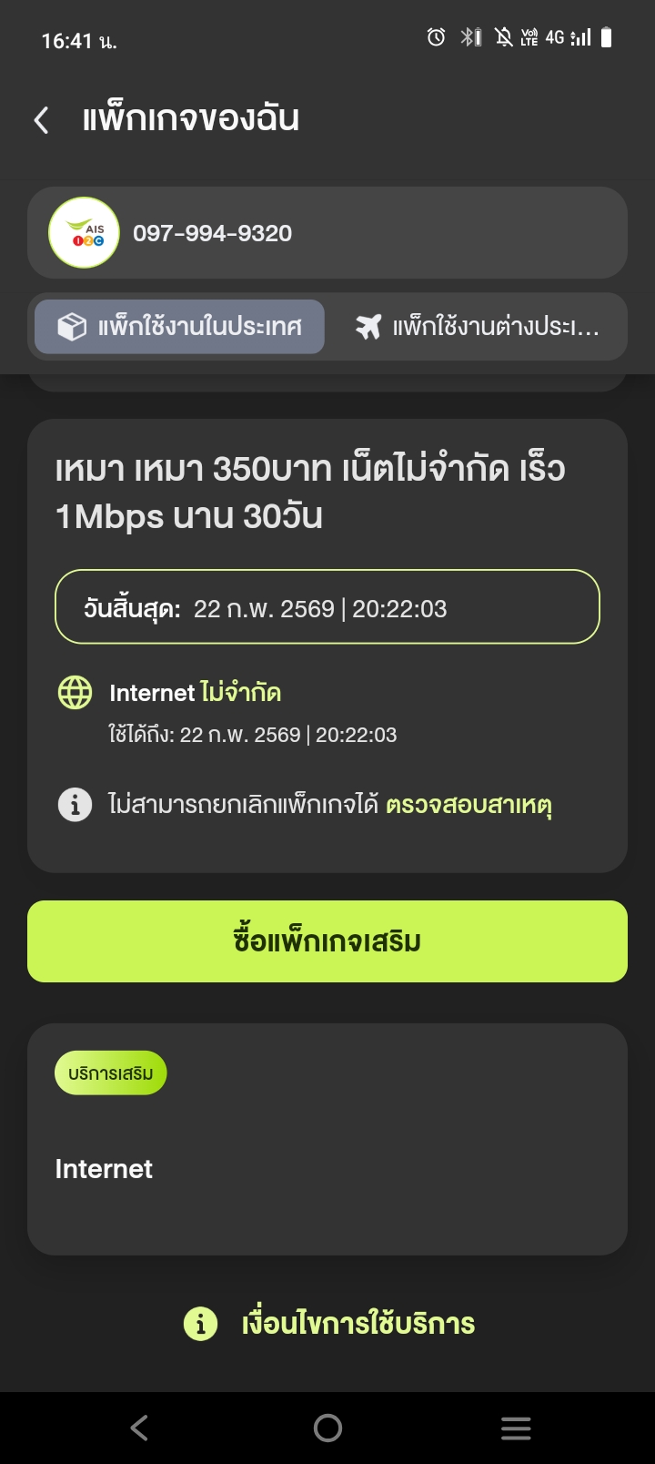 ยกเลิกแพ็คเกจหลัก AIS ไม่ได้ค่ะ
