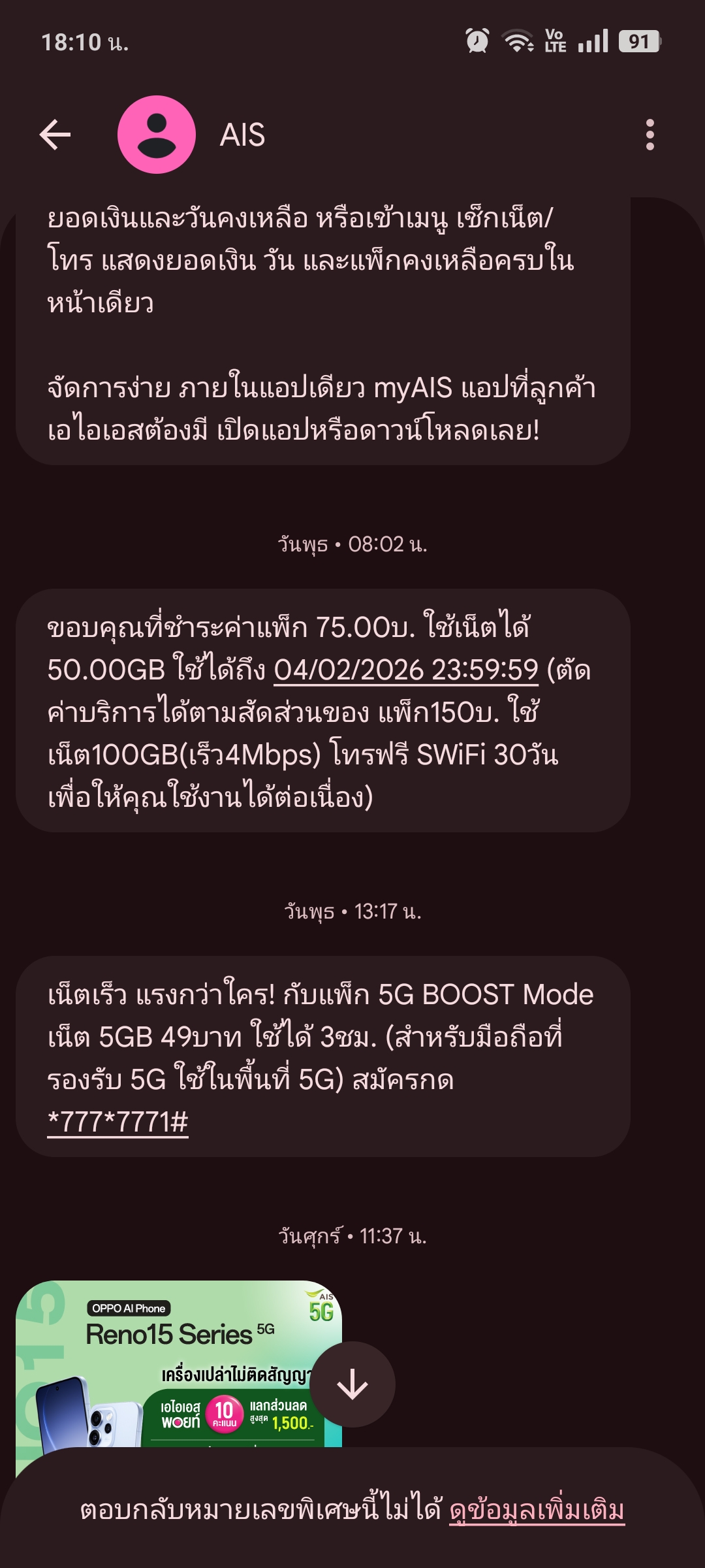 อยากทราบว่า จะหมดตามที่แจ้งหรือว่าในข้อความ และจะต่อเเพคเกตได้อีกไหม
