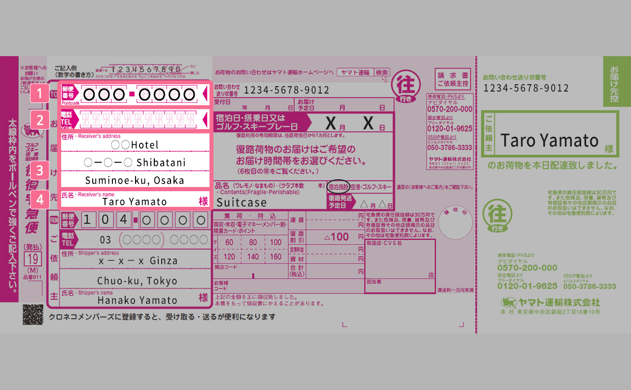 หรือกรณีจากโรงแรม ก็สอบถามพนักงานโรงแรม ว่าโรงแรมมีบริการแมวดำ Yamato ไหม (คุยไม่รู้เรื่อง ก็โชว์ภาพสัญลักษณ์ขนส่งแมวดำ) หากโรงแรมมีบริการ พนักงานจะเอา
