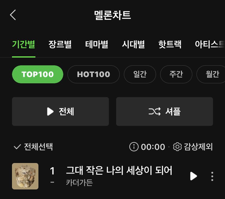 กลายเป็นซิงเกิ้ลแรกจาก Car, the garden (ชาจองวอน) และซิงเกิ้ลลำดับที่ 3 ภายในปี 2026 ที่สามารถขึ้นอันดับหนึ่งบนชาร์ตนี้ได้สำเร็จ