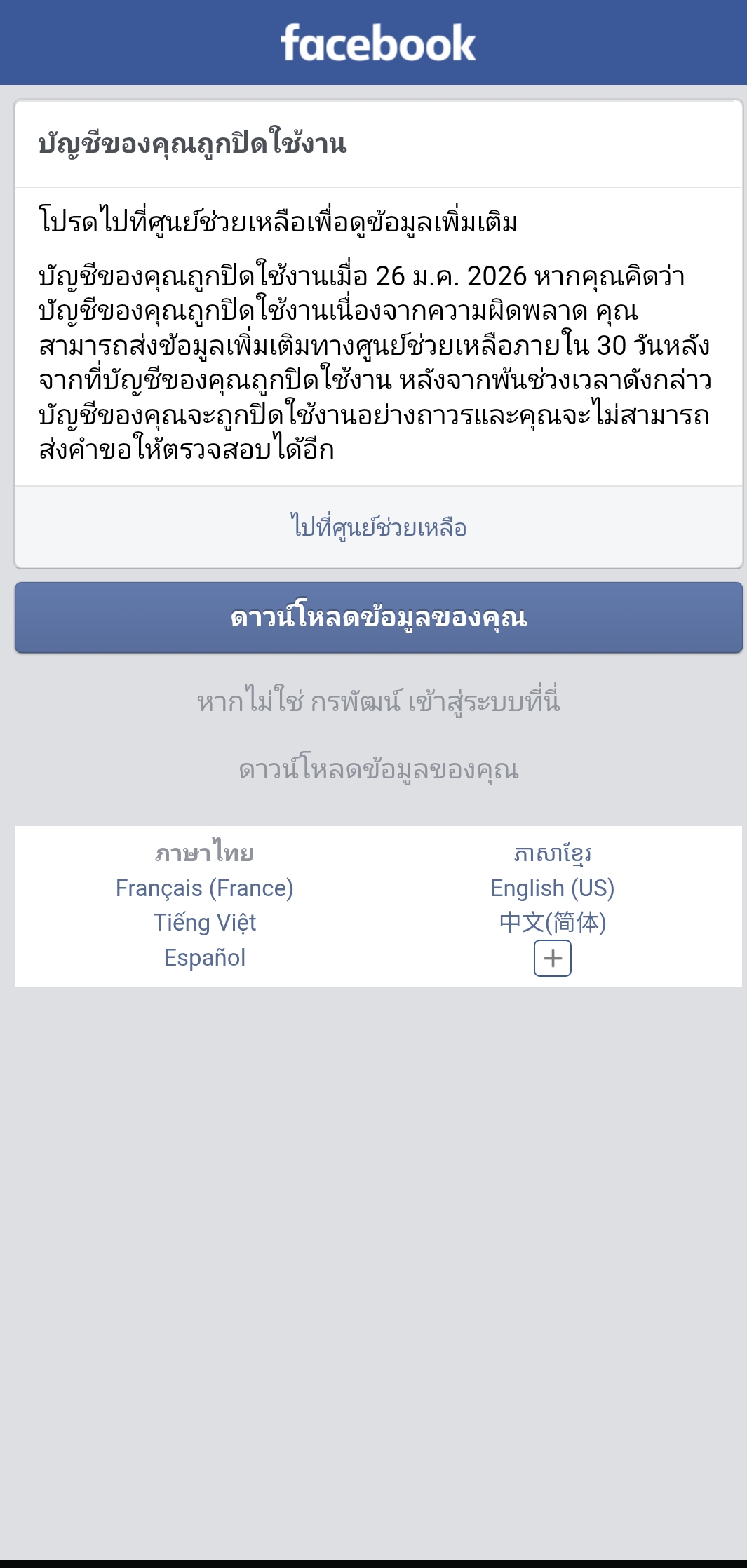 เฟสบุ๊คถูกปิดใช้งาน ทำยังไงดีครับเฟสใช้มาหลายปีมาก