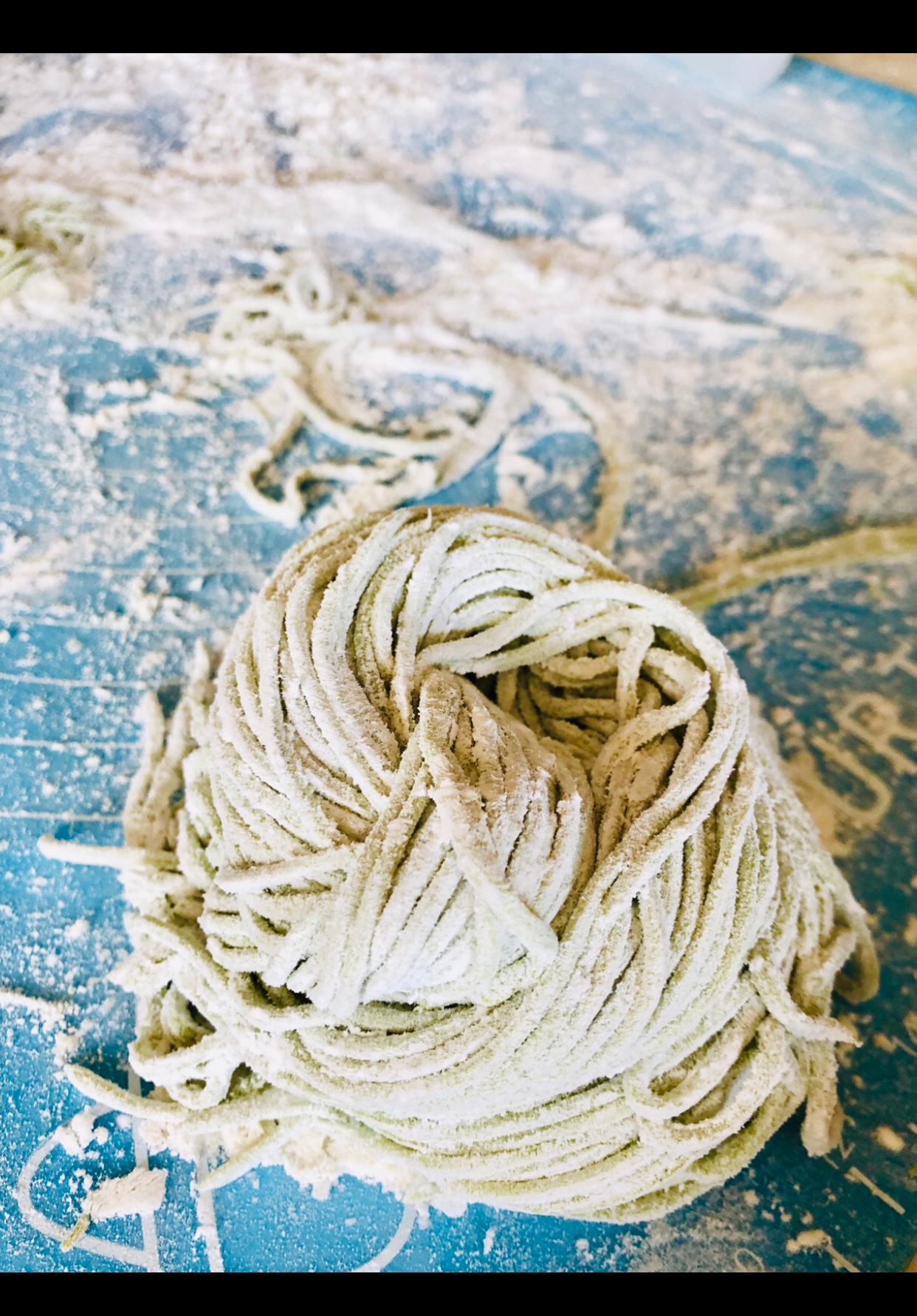 4.โรยแป้งนวลก่อนตัดตัดเสร็จโรยอีกก่อนม้วนเป็นก้อนเข้าถุงเก็บก็โรยแป้งนวลอีก