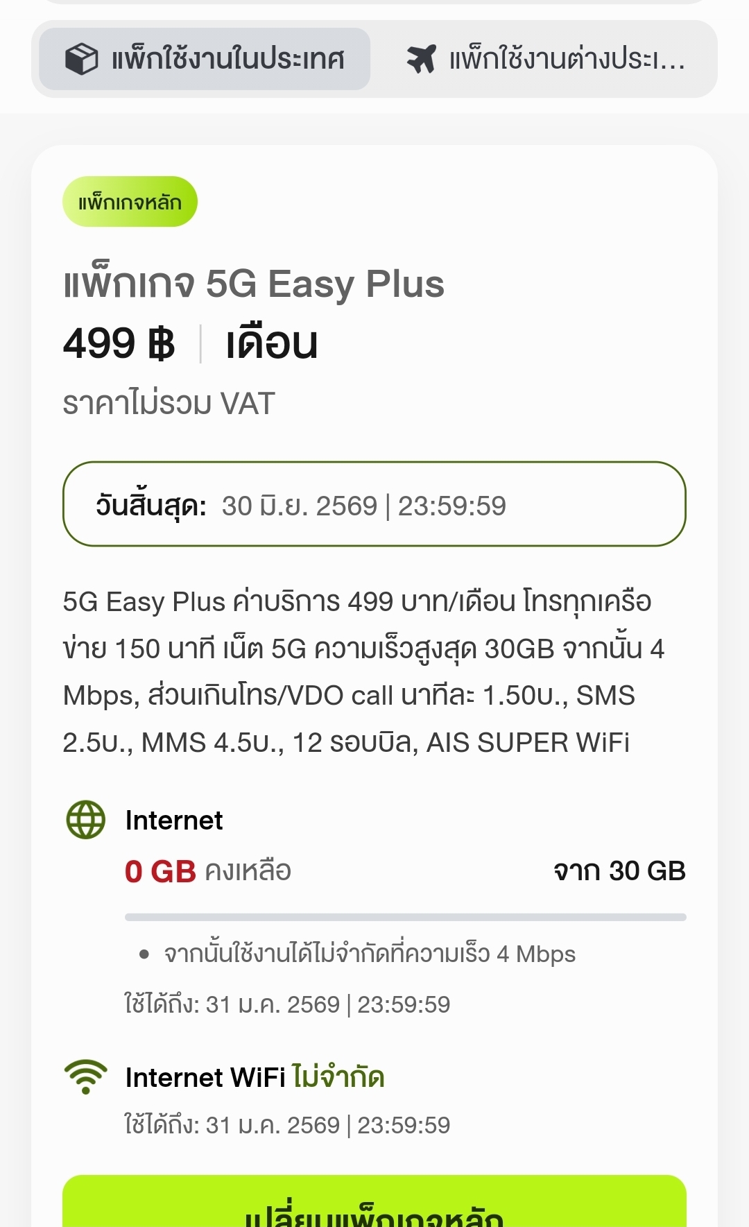 ยกเลิกแพ็คเกจหลัก ais
