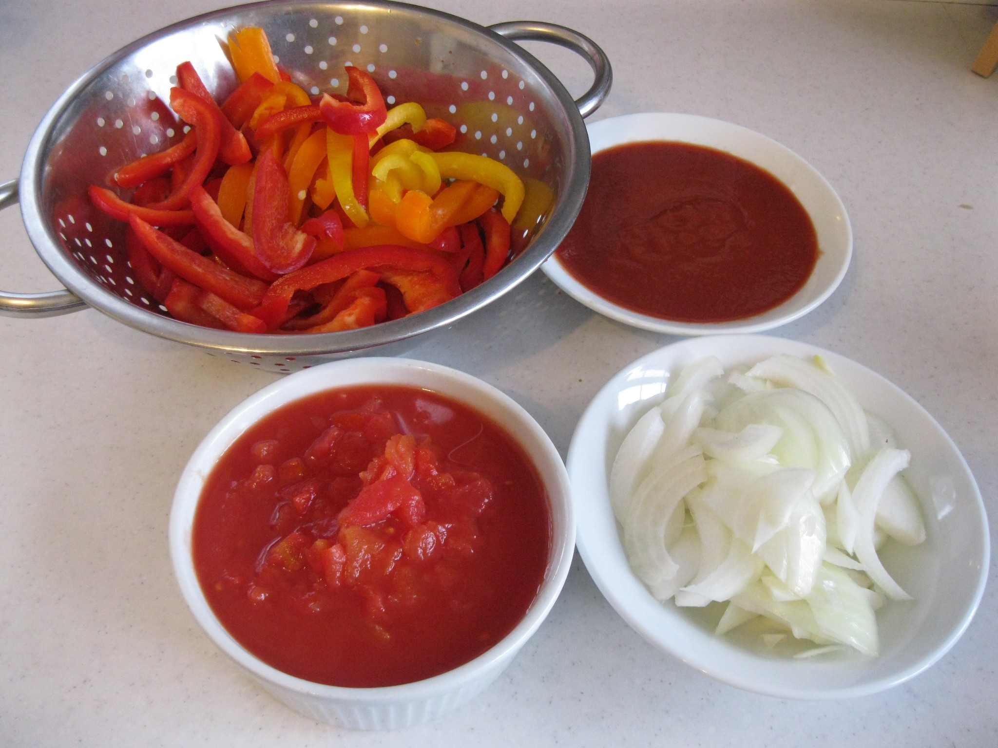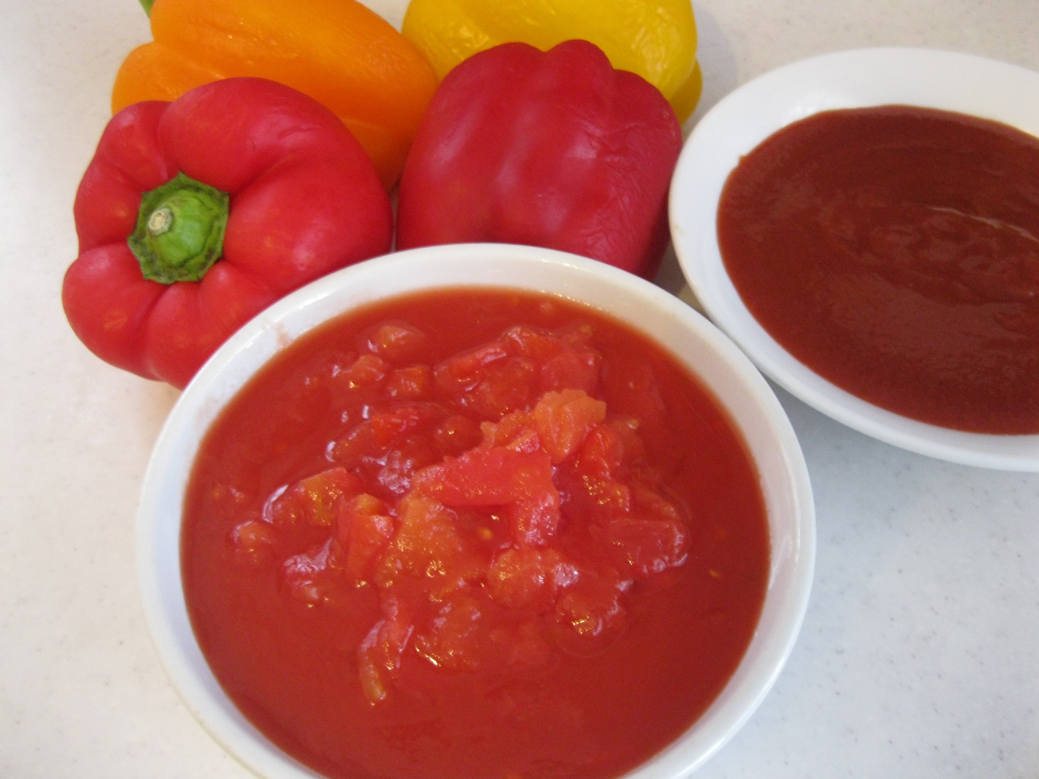 ส่วนผสม มะเขือเทศกระป๋อง มะเขือเทศสด พริกหวาน หอมใหญ่ ซอสมะเขือเทศเข้มข้น ผงปาปริก้า เกลือป่น