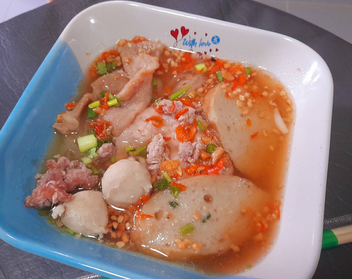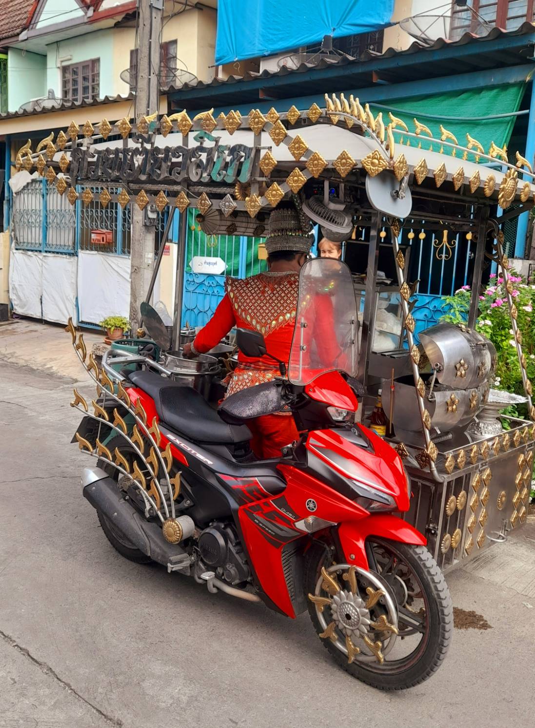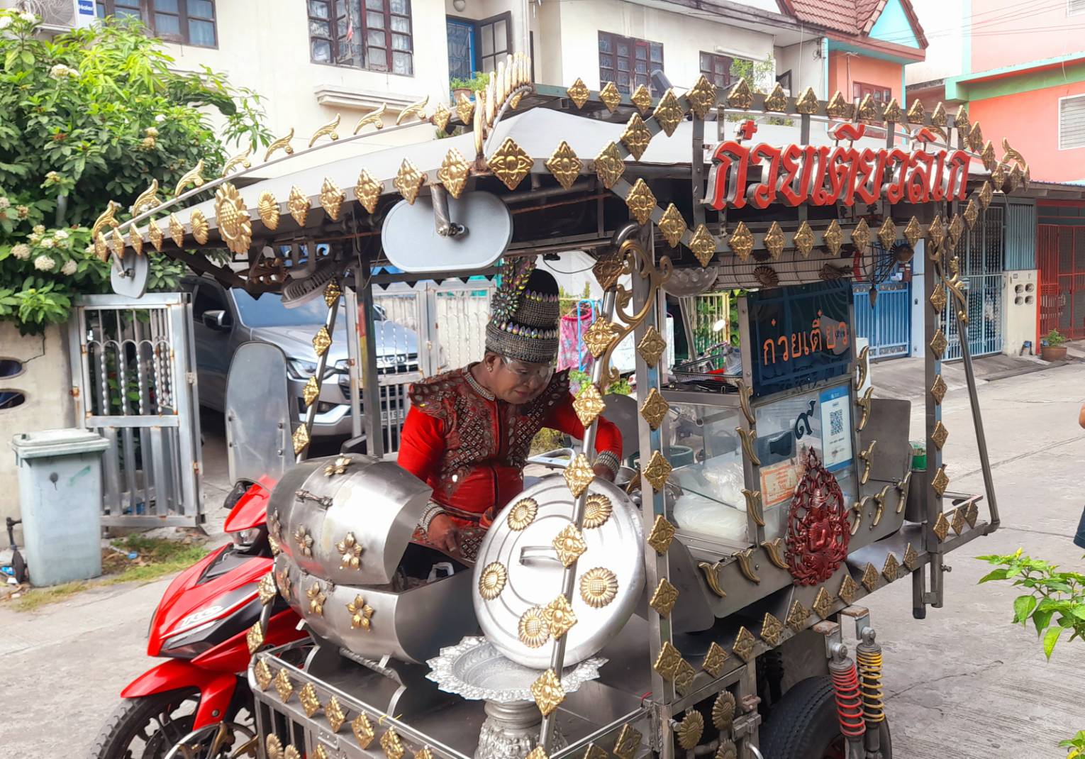 น้ำซุปเดือดๆ เหมือนจังหวะปี่พาทย์ที่เร่งเร้า เสียงตัก เสียงปรุง คล้ายท่อนร้องรับ-ส่งบนเวทีลิเกเลย ส่วนพ่อค้าก็แต่งองค์ทรงเครื่องพระเอกลิเกชนิดเต็มยศ ทุกท่วงท่าการลวกเส้น ใส่ลูกชิ้น โรยพริกน้ำส้ม คือ “รำมือ” ที่มีลีลา