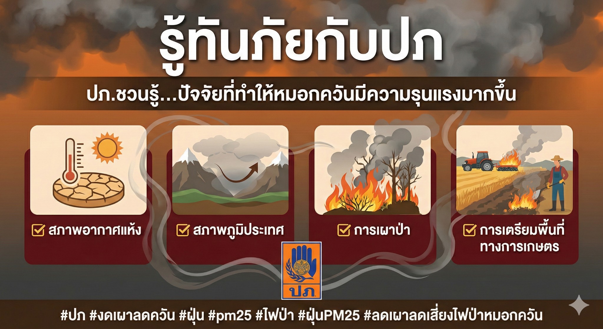 ทาง ปภ. ได้สรุป 4 ปัจจัยหลัก ที่ทำให้สถานการณ์หมอกควันแย่ลง ดังนี้ครับ: