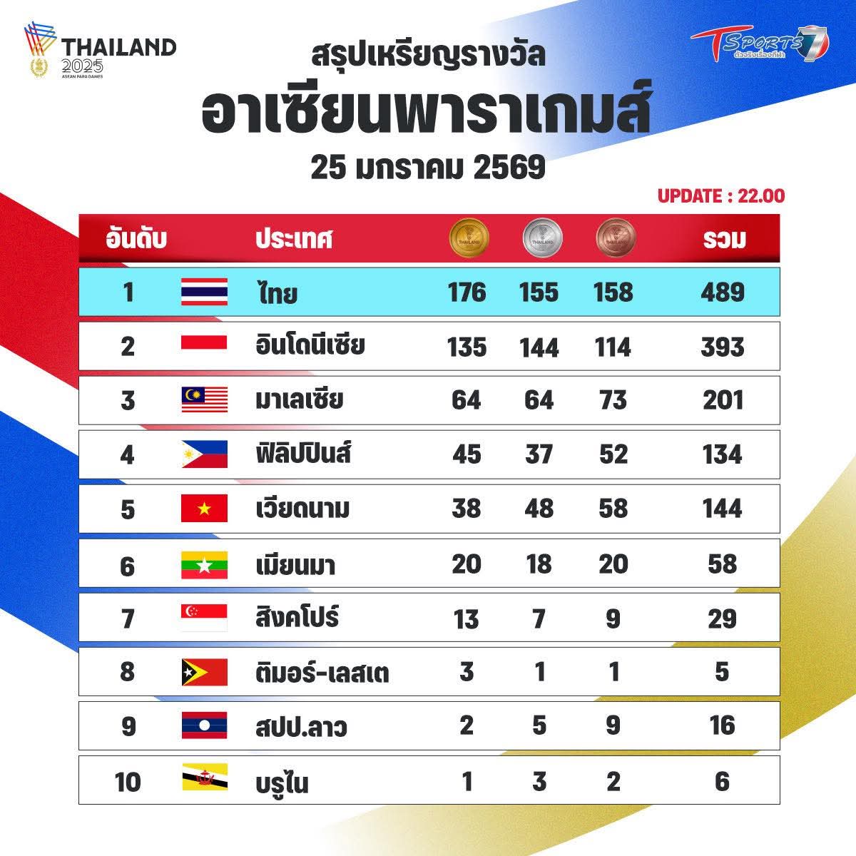 สรุปเหรียญทีมชาติไทย 🎉 ประจำวันที่ 21 มกราคม 2026 🥇 เหรียญทอง 35 เหรียญ 🥇 ✅ บาสเกตบอล 3x3 ทีมหญิง ✅ บาสเกตบอล 3x3 ทีมชาย ✅ ว่ายน้ำ กบ 100 ม. ชาย คลาส SB14 ✅ ว่ายน้ำ กบ 100 ม. หญิง คลาส SB7-SB8 ✅ ว