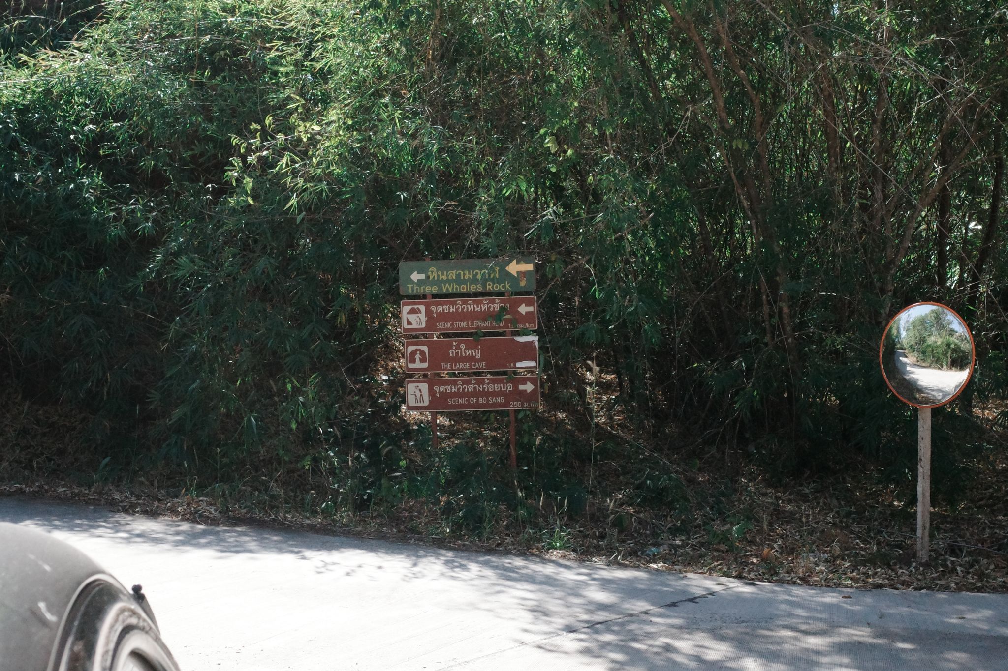 ในที่สุดก็มาถึงทางขึ้น 'หินสามวาฬ' แลนด์มาร์คที่ตั้งใจมาครับ ที่นี่เราต้องจอดรถไว้ด้านล่างแล้วใช้บริการรถกระบะของเจ้าหน้าที่ขึ้นไปแทน ค่ารถเหมาคันละ 500 บาทครับ มากันแค่สองคนแอบรู้สึกว่าแรงไปนิด พี่เจ้าหน้าที่เลยแนะนำให้ลองนั่งรอก่อน เผื่อจะมีใครมาช่วยแชร์