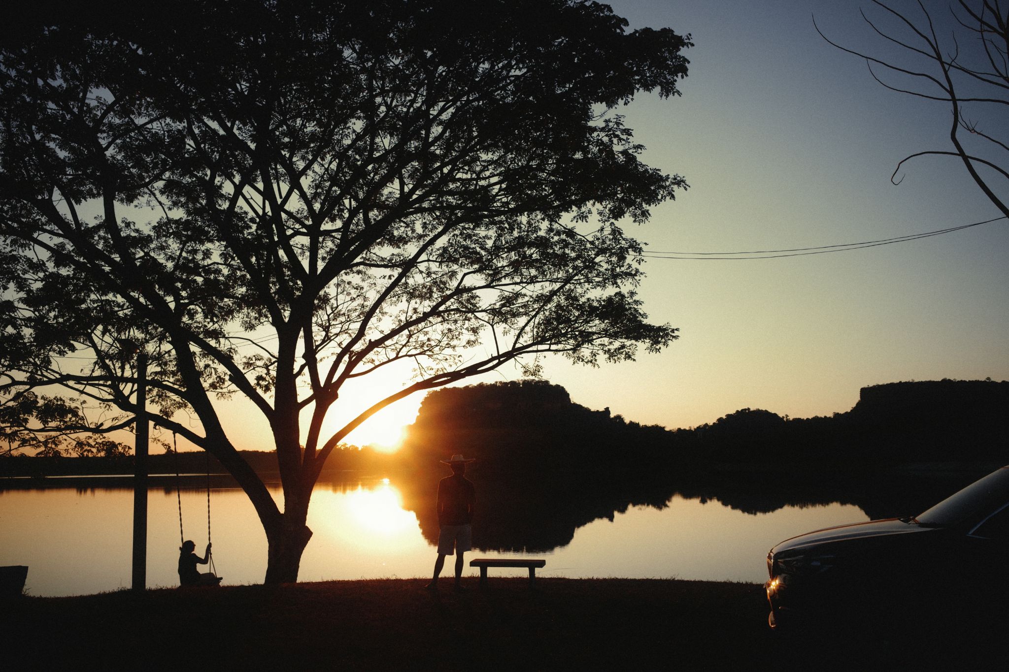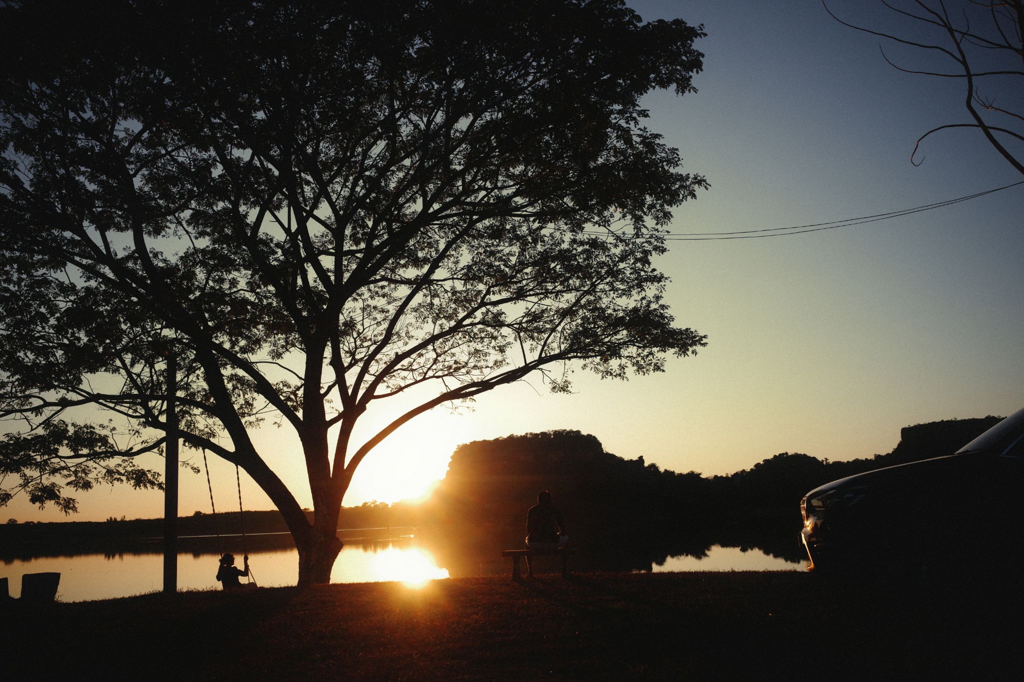 แต่แล้ว... ความสงบก็ถูกทำลายครับ ประมาณสามทุ่มมีเสียงเพลงดังขึ้นและแรงขึ้นเรื่อยๆ จากกลุ่มวัยรุ่น 5-6 คนที่มาจับกลุ่มกันข้างๆ ลาน เราพยายามทนจนเกือบตีสอง แต่เสียงเพลงและ 'กิจกรรม' ในวงนั้น มันทำให้เรานอนไม่ได้จริงๆ จนวินาทีนั้นคิดในใจเลยว่า 'หรือเราควรเลิกกางเต็นท์แล้วไปนอนโรงแรมดี?' (เลิกในที่นี้คือเลิกถาวร) สุดท้ายผมตัดสินใจเก็บของข้ามคืนครับ โทรหาคุณป้าให้มาเปิดรั้วให้ ป้าแกตกใจมากที่เห็นสภาพเรา พอเห็นสาเหตุ ป้าเลยรีบไปปลุกสามีแล้วเข้าไปจัดการกลุ่มวัยรุ่นจนแยกย้ายกันไป ป้าแกขอโทษขอโพยใหญ่ บอกว่าปกติไม่มีแบบนี้ สรุปเราเลยตัดสินใจแบกของกลับเข้าเต็นท์นอนต่อครับ แต่ก่อนเข้านอนต้องบอกว่าคืนนี้ดาวที่นี่สวยมากกก เยอะและดูใกล้จนเหมือนจะเอื้อมมือถึง เป็นการจบคืนที่วุ่นวาย ขอนอนพักผ่อนเอาแรงกันก่อน ฝันดีราตรีสวัสดิ์จากใต้แสงดาวที่บึงกาฬครับ