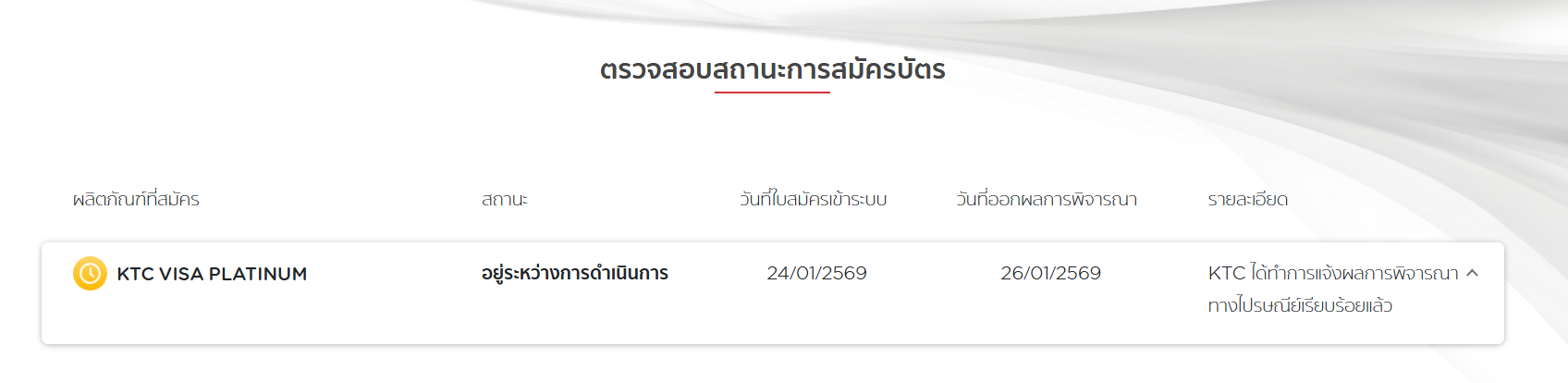 KTC แจ้งว่าส่งผลการพิจารณาทางไปรษณีย์เรียบร้อยแล้ว
