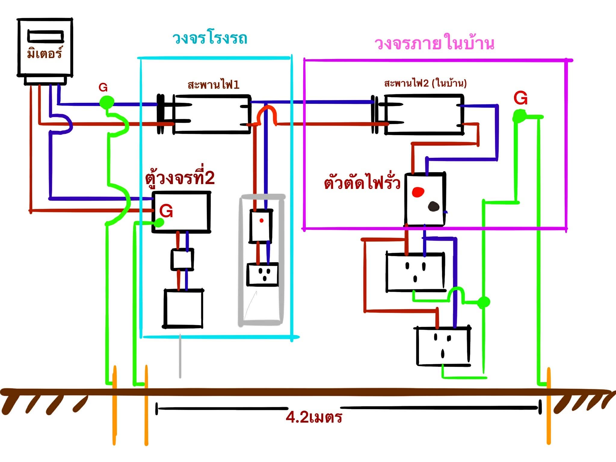 และมีความคิดจะเพิ่ม สายดิน(ในกรอบสีเทา)เป็น เบรคเกอร์คุมปลั้ก1ชุด ในโรงรถ