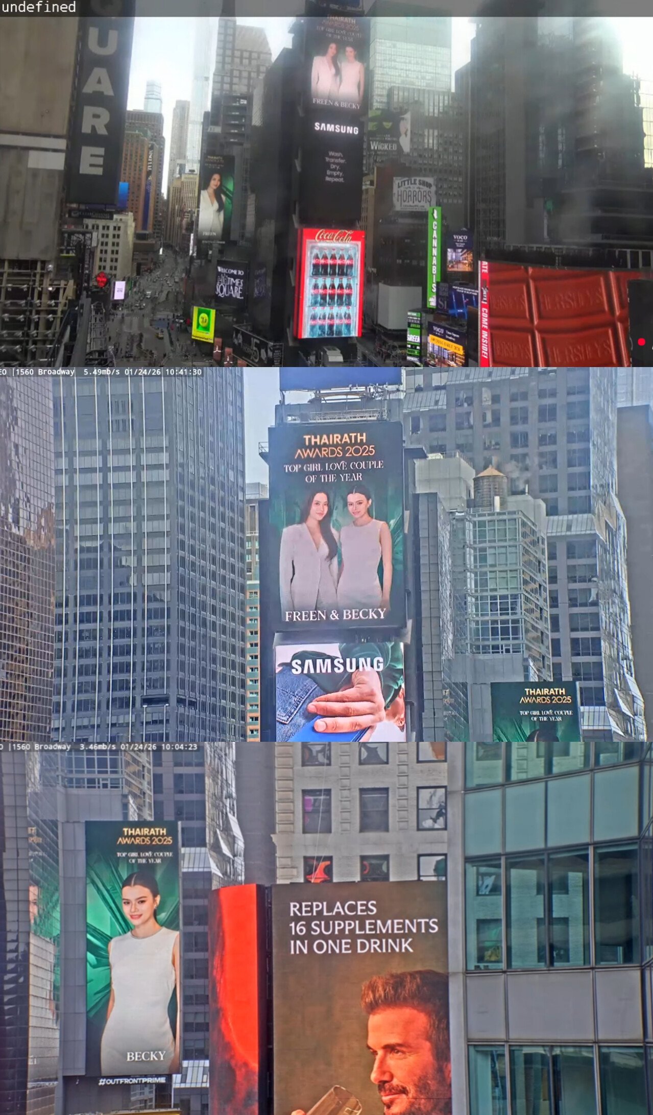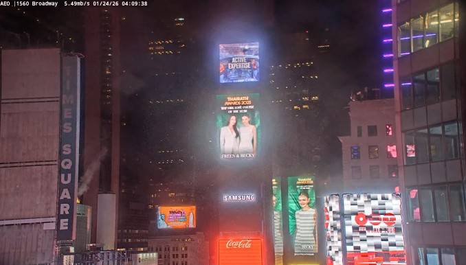 - ได้ขึ้นจอที่ Time square, New York, USA