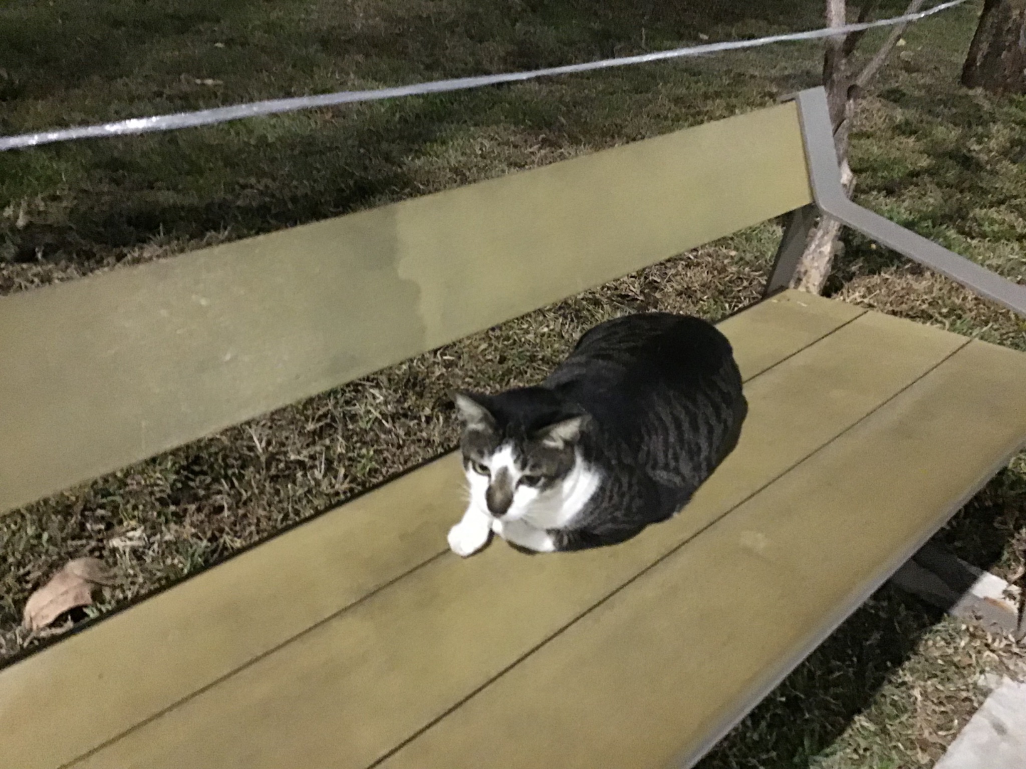 แมวจร ในสวนลุม ยึดเก้าอี้ครับ แสนรู้ครับ เมื่อผมบอกว่า ขอถ่ายภาพหน่อย ก็ยอมหันหน้ามาทันใด