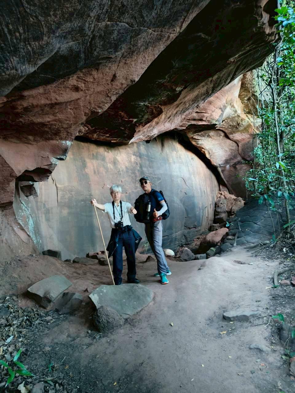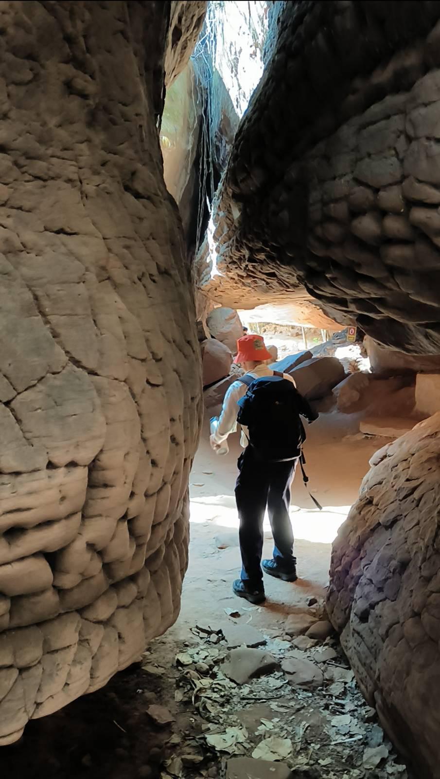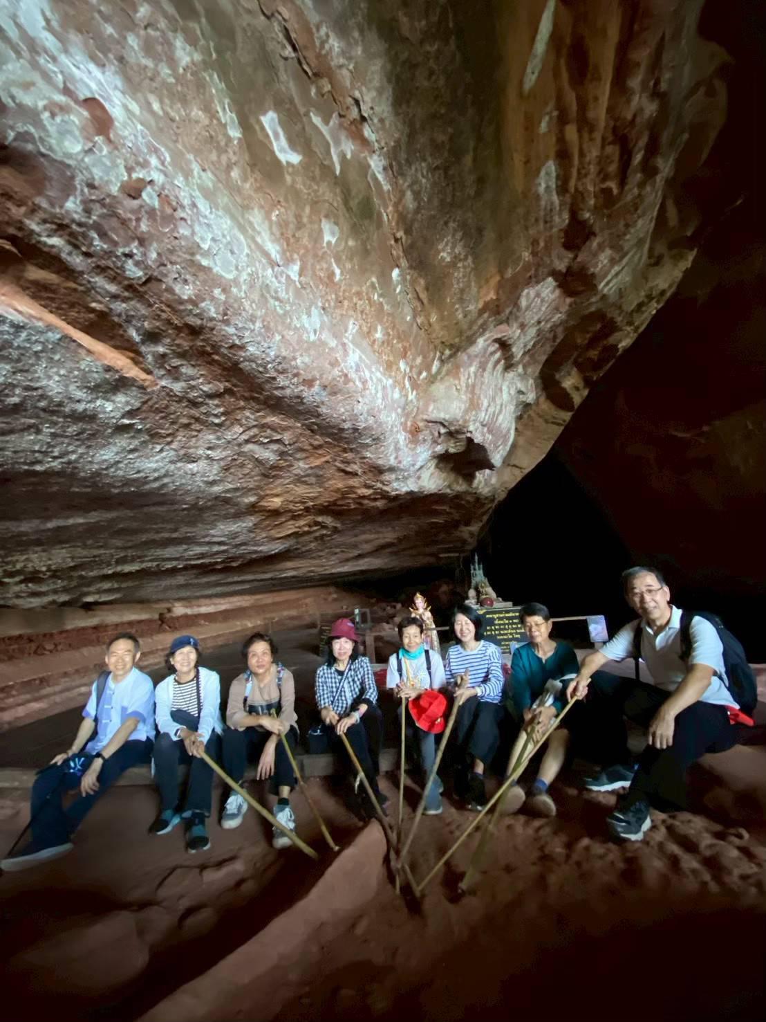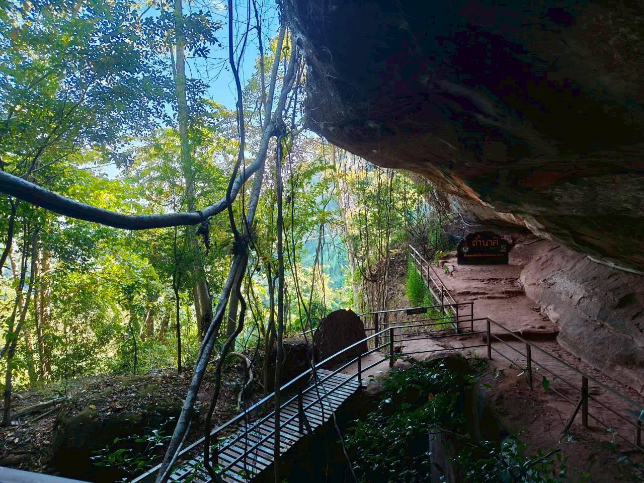 พอเห็นแบบนี้สว.หลายคนก็น่าจะถอยครับเราจึงปรับเป็น เดินสำรวจ 2 วัน คือวันแรกไปขึ้นแค่ถ้ำนาคีแล้วกลับทางเดิมช่วงนี้ไปกลับ 4.9 km ทุกคนลงสนามครับ เราต้องมีไกด์ครับ ก็เป็นอาสาสมัครของทางอุทยาน ซึ่งก็ให้ความรู้และแนะนำเส้นทางได้อย่างดี