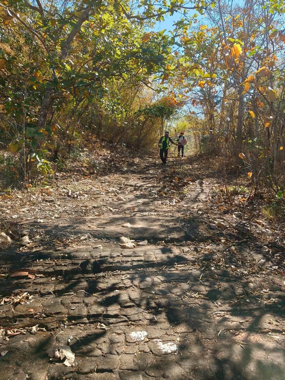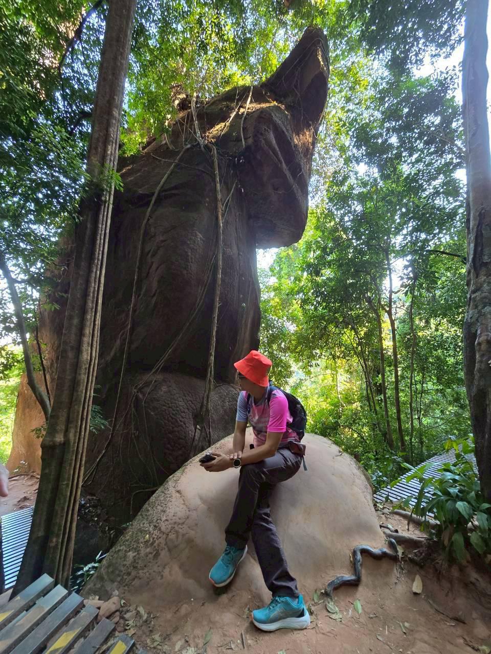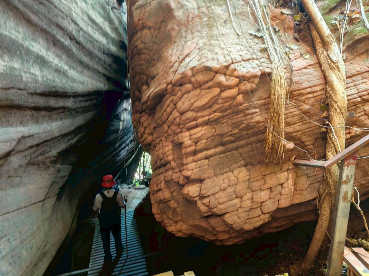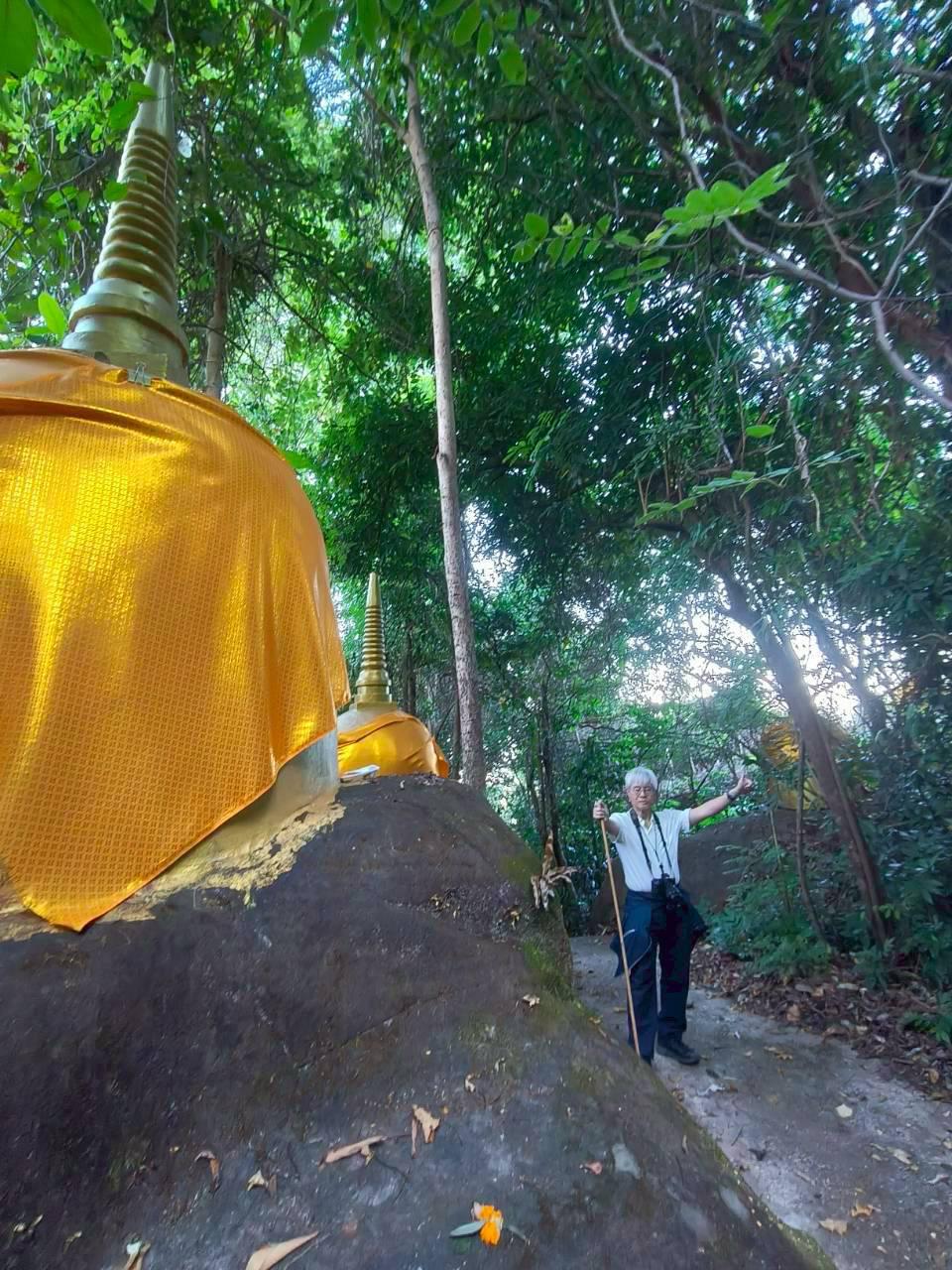 พอเห็นแบบนี้สว.หลายคนก็น่าจะถอยครับเราจึงปรับเป็น เดินสำรวจ 2 วัน คือวันแรกไปขึ้นแค่ถ้ำนาคีแล้วกลับทางเดิมช่วงนี้ไปกลับ 4.9 km ทุกคนลงสนามครับ เราต้องมีไกด์ครับ ก็เป็นอาสาสมัครของทางอุทยาน ซึ่งก็ให้ความรู้และแนะนำเส้นทางได้อย่างดี