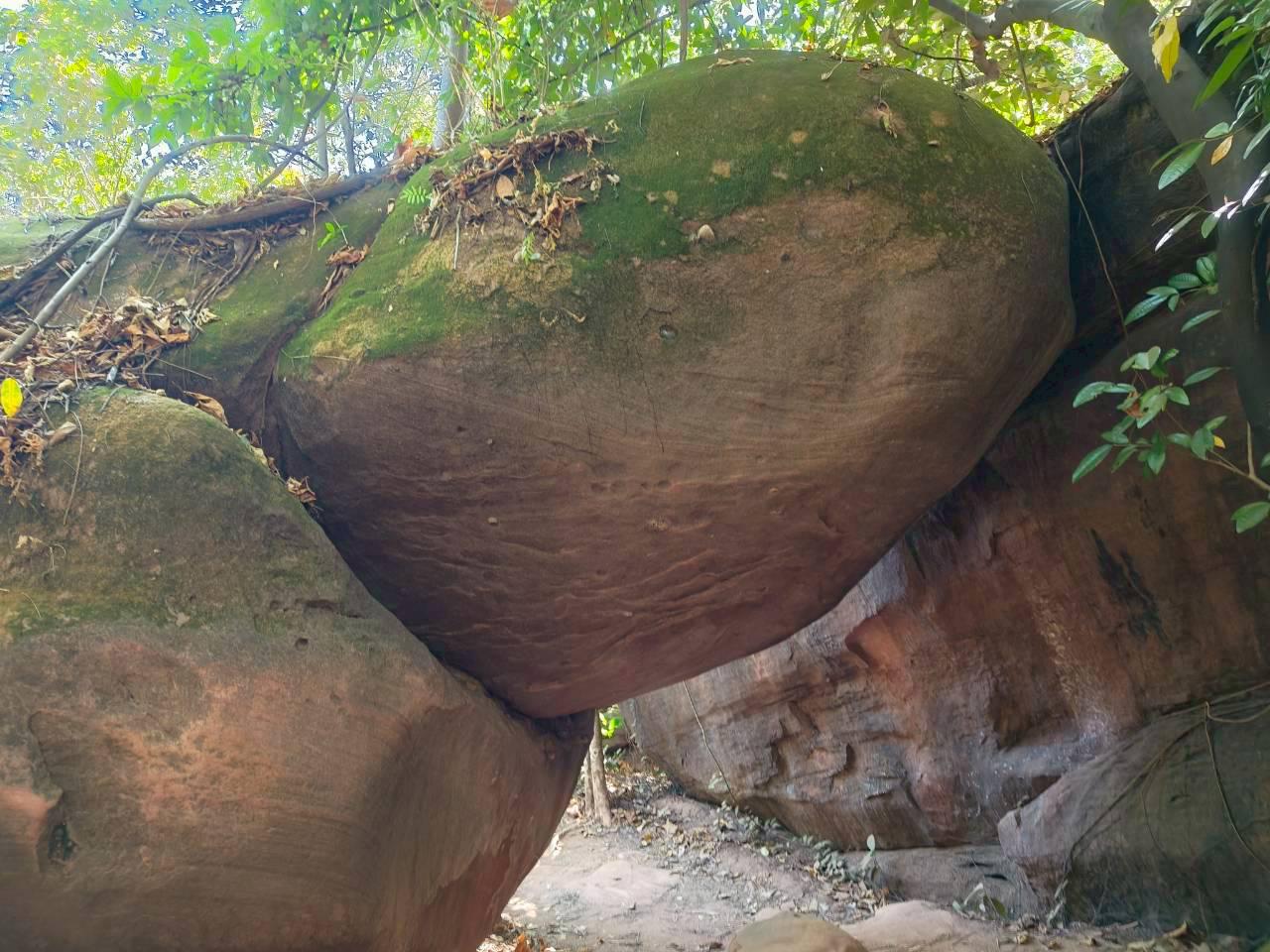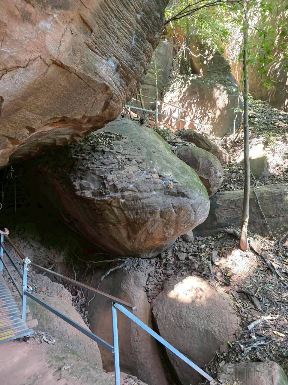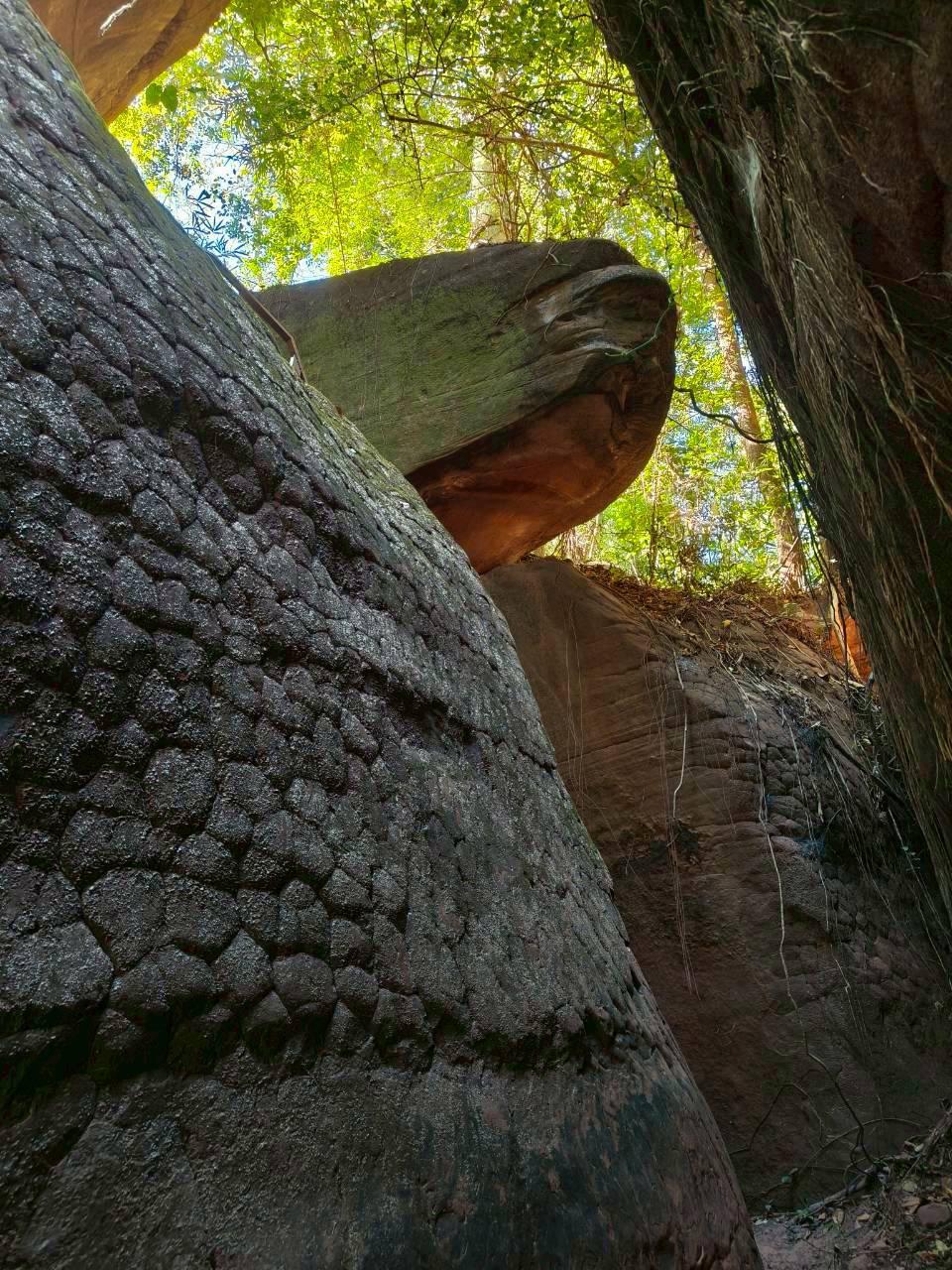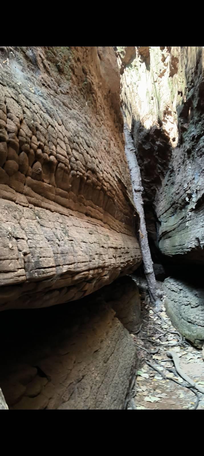 มองเห็นเจดีย์หลวงปู่เสาร์ อยู่ที่ชง่อนผาถัดไปซึ่งเราไม่ได้แวะเดินต่อลงมาที่ถ้ำนาคา ช่วงนี้ละครับตื่นตาจริงๆ เหมือนอยู่ในถ้ำที่เต็มไปด้วยฟอสซิลของงูยักษ์ ...ใครบอกผมแบบนี้ผมเชื่อจริงๆนะ!!!
