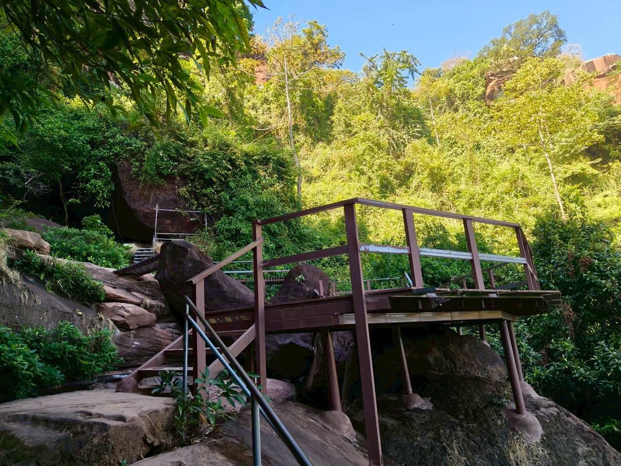 จากนั้นเดินลงมาต่อทางน้ำตกตาดพิมานแต่เราไม่ได้แวะเข้าไปเพราะช่วงนี้น้ำน้อยไม่สวยทางเดินช่วงนี้เป็นบันไดเหล็กชันๆครับก็จาะมาผ่านหินเต่า