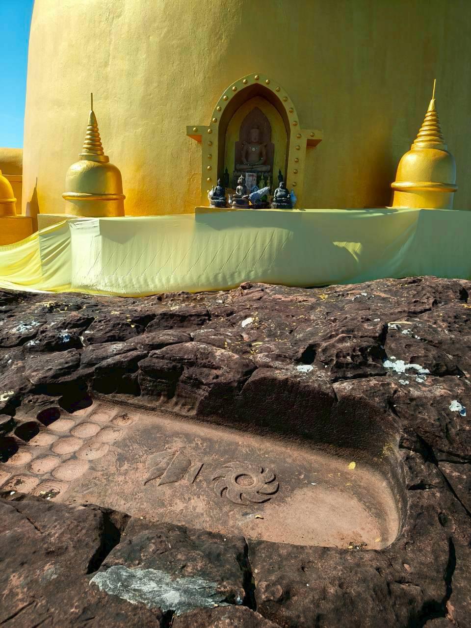 ลานหินด้านนอกมีพระพุทธบาทจำลองไว้ให้สักการะ