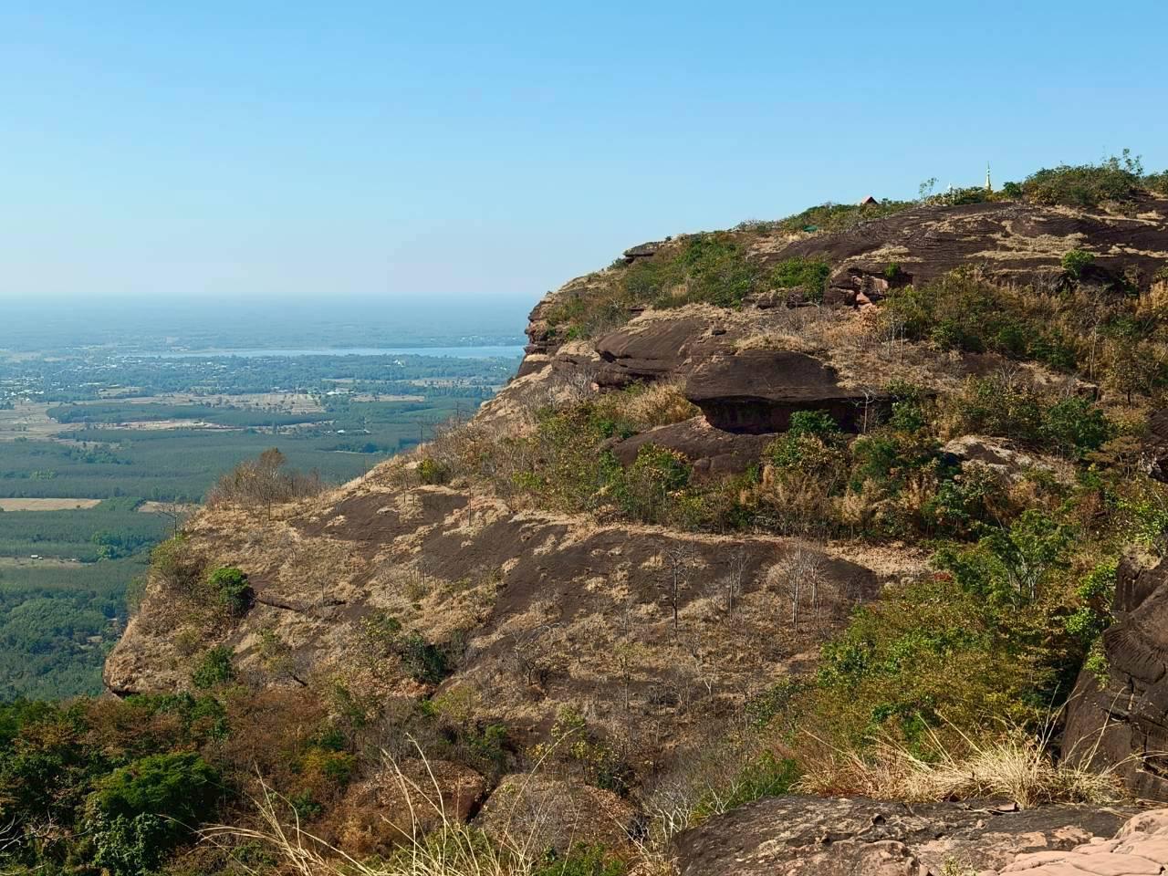 จากจุดนี้เราเดินต่อไปบนเส้นทางเลียบผาตามแนวของบึงโขงโหลงเพื่อมุ่งหน้าไปยังเจดีย์หลวงปู่วัง