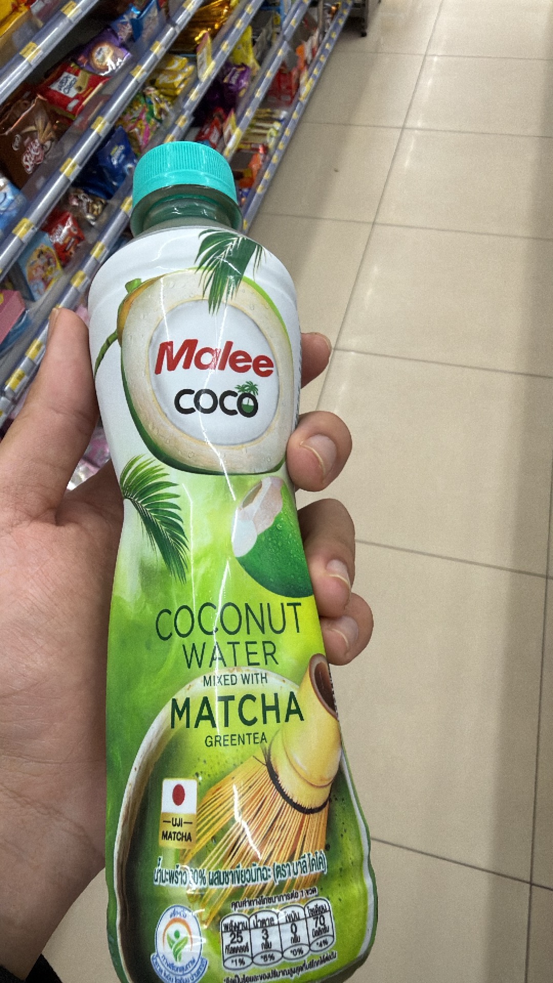 ช่วงนี้กระแสมัทฉะมาแรง น้ำมะพร้าวผสมมัทฉะชาเขียว Malee CoCo ของใหม่ที่วางอยู่โซนเดียวกับน้ำมะพร้าวพร้อมดื่ม แพ็กเกจขวดสีเขียว ดูสดใส มีรูปถ้วยมัทฉะกับฉะเซ็น ชัดเจนว่าเป็นสายมัทฉะ อ่านรายละเอียดหลัง