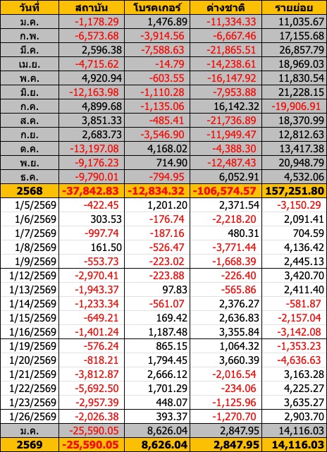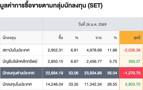 Sinthorn Summary 26/1/2569 : ต่างชาติขายสุทธิ -1,270.70 ลบ.
