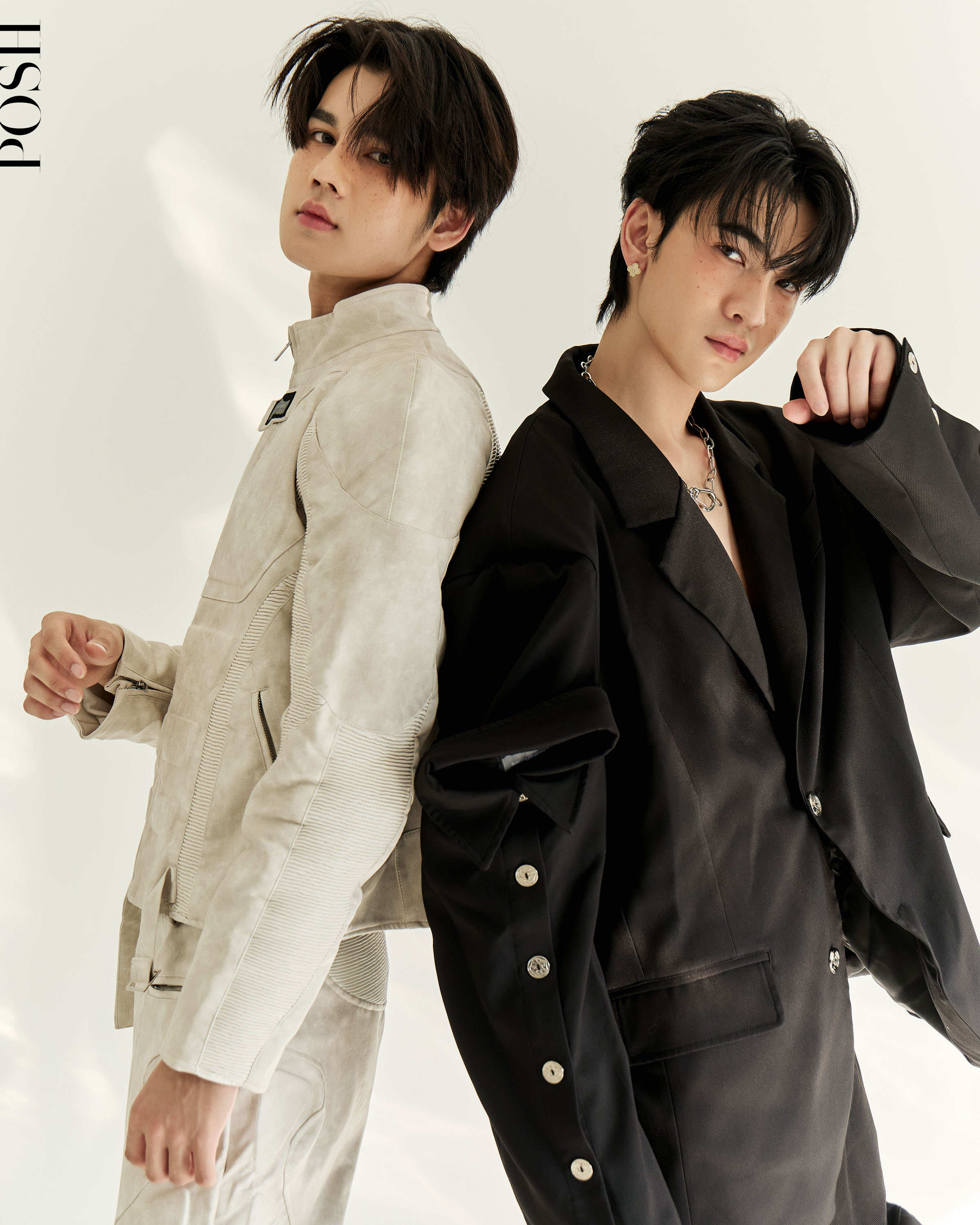 POSH Magazine Thailand จึงขอชวนทั้งคู่มานั่งพูดคุยผ่านชุดคำถามที่หลากหลาย ไม่ได้จำกัดอยู่แค่เรื่องผลงานเท่านั้น แต่ยังพาไปสำรวจทัศนคติและการเรียนรู้ที่หล่อหลอมพวกเขาในแต่ละก้าวของการเติบโต ในวันที่ซันและชายยังคงยืนอยู่ในบทบาทของคำว่า ‘นักแสดงใหม่’ ที่ทุกความสำเร็จไม่ใช่เรื่องบังเอิญ หากแต่เป็นผลลัพธ์ของความตั้งใจ การลงมือทำ และการเติบโตอย่างมีความหมายในแบบของตัวเอง