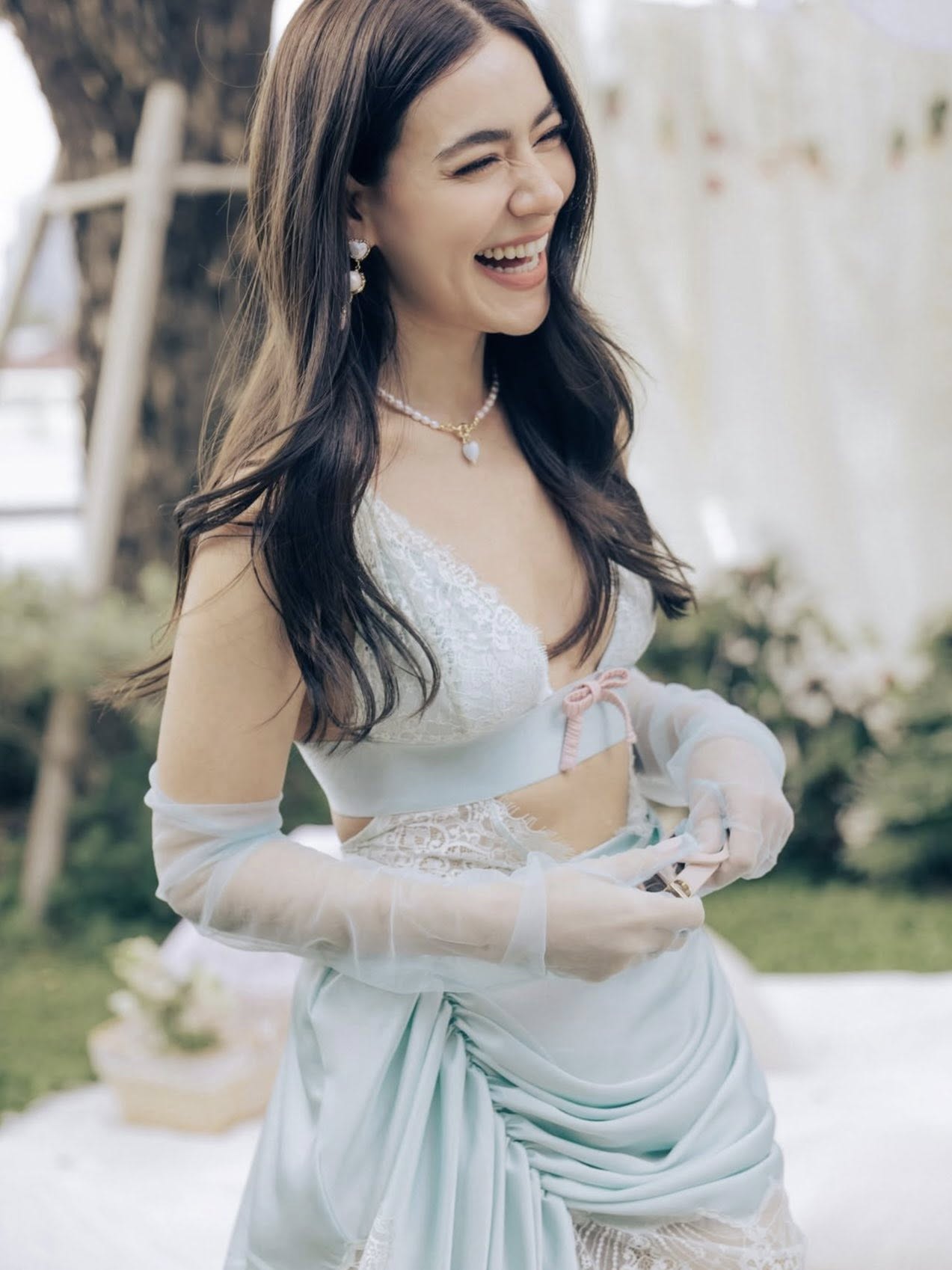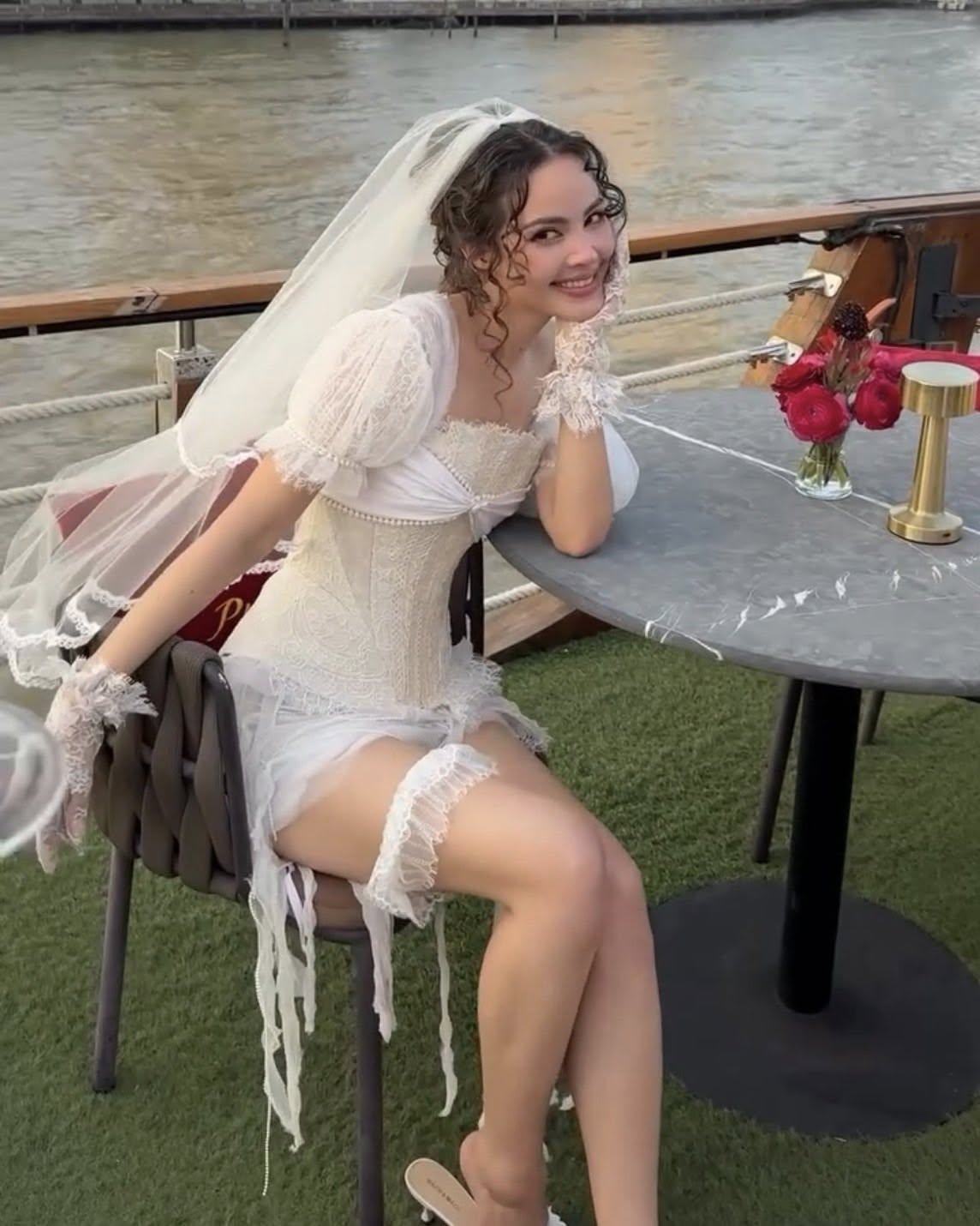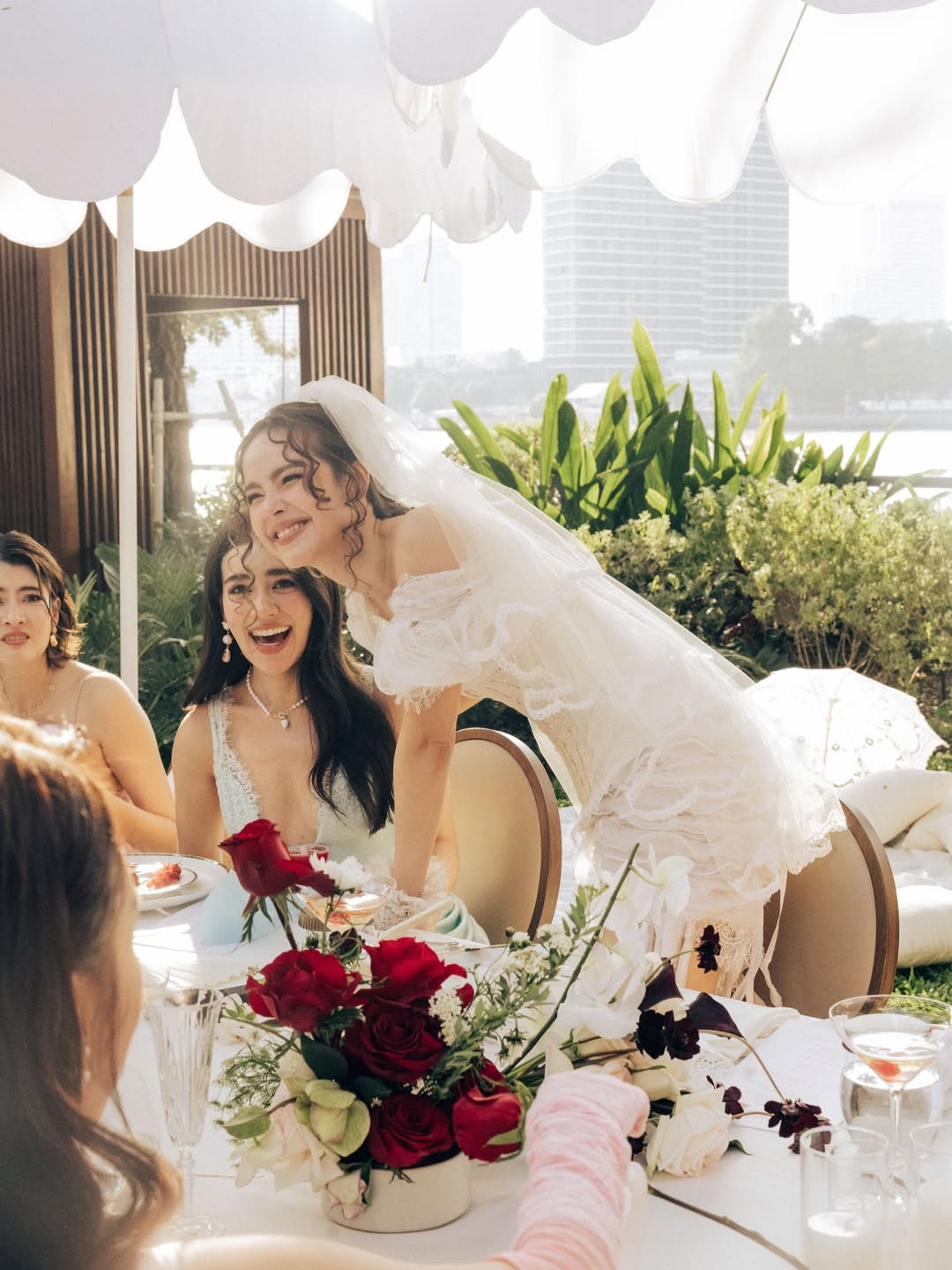 ไฮไลต์ของงานคงหนีไม่พ้นเจ้าของงานอย่างสาวญาญ่าที่ปรากฏตัวในมินิเดรสสีขาวดีไซน์เก๋ ช่วงบนเป็นคอร์เซ็ตเข้ารูปโชว์เอวเอส เสริมความหวานด้วยดีเทลลูกไม้และถุงมือซีทรู และงานนี้บอกเลยว่าไม่มีใครยอมใคร เพราะเหล่าเพื่อนเจ้าสาวระดับนางเอกแถวหน้าของเมืองไทยตบเท้าเข้าร่วมงานกันอย่างคึกคัก
