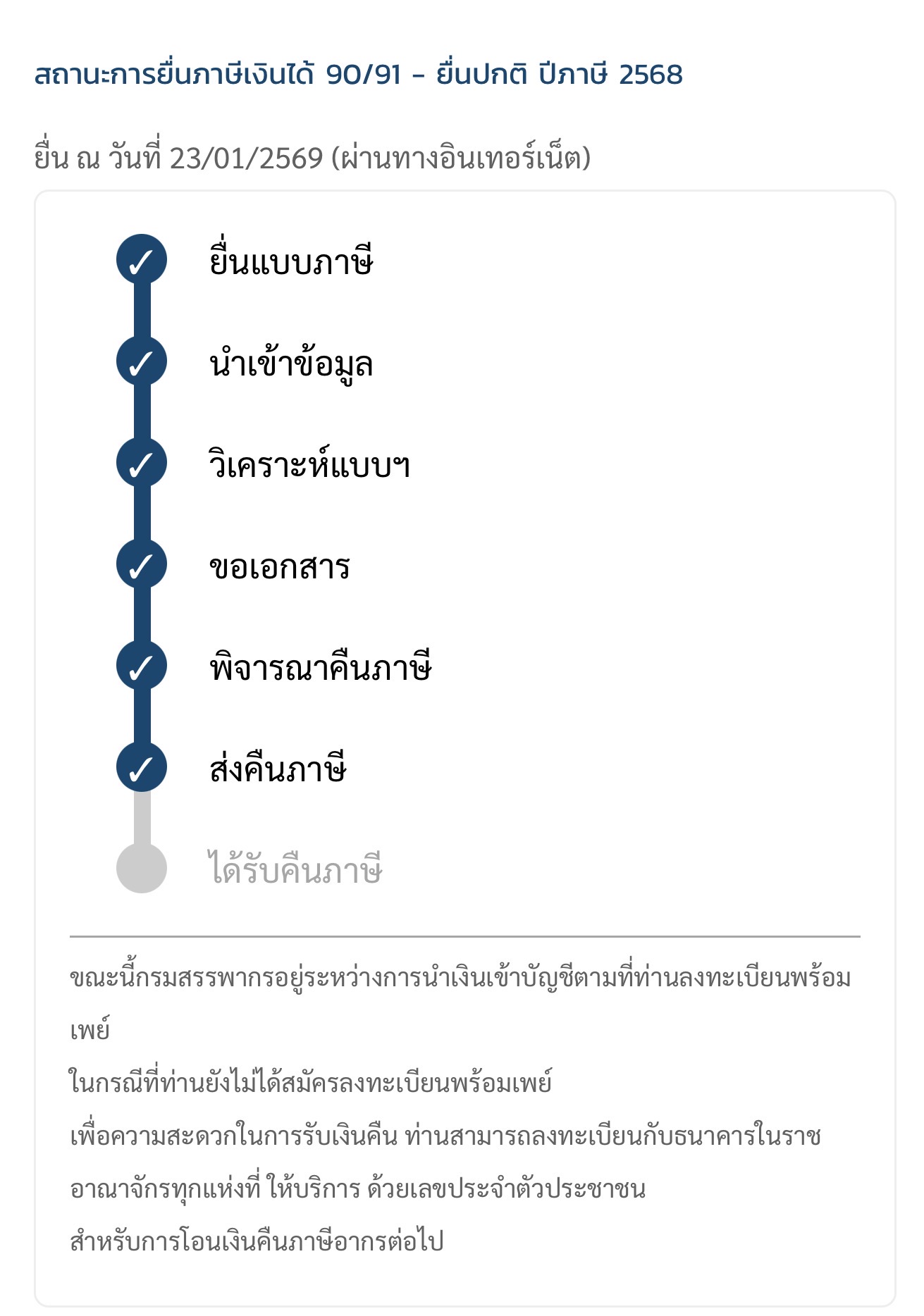 ขึ้นสถานะภาษีแบบนี้อีกกี่วันจะได้เงินคืน