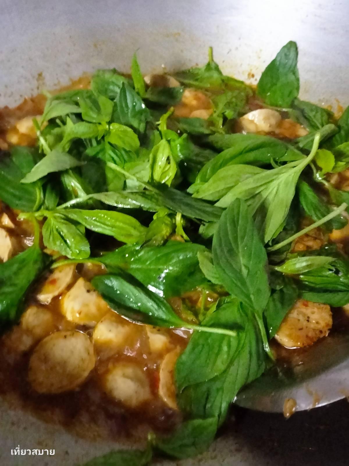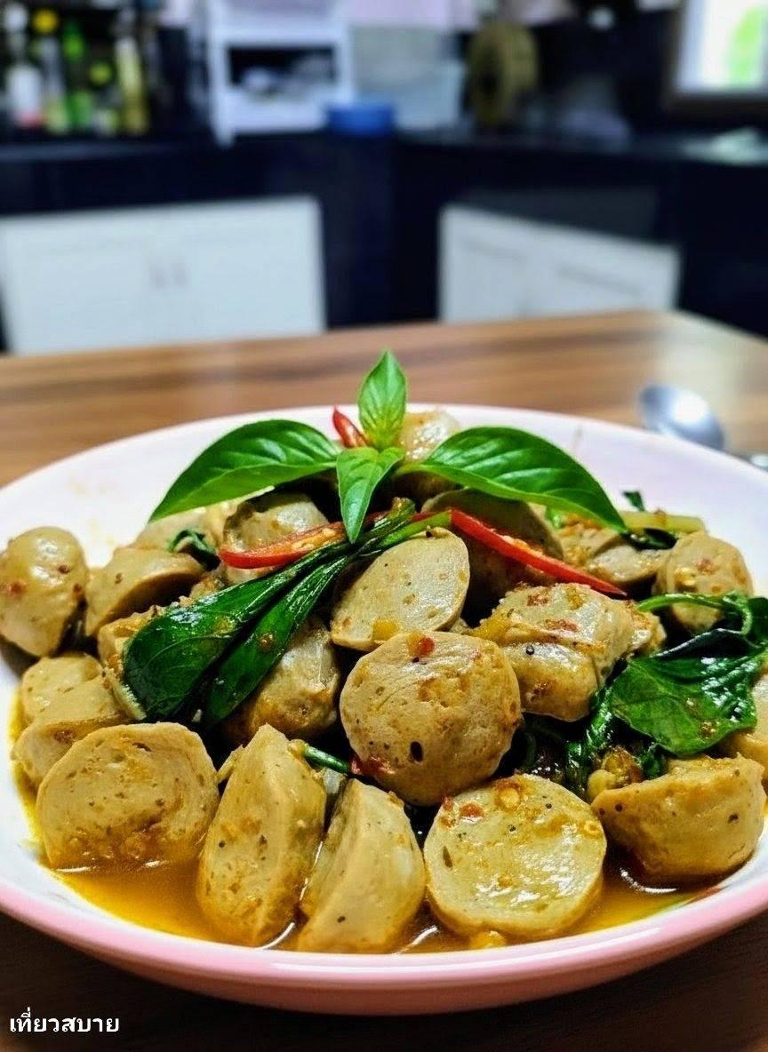 สูตรเด็ด ผัดเผ็ดลูกชิ้นใบโหระพา ใส่ลูกผักชีคั่ว เมนูบ้านๆ ทำง่าย หอมจนติดใจ 🍡🌶️🌿