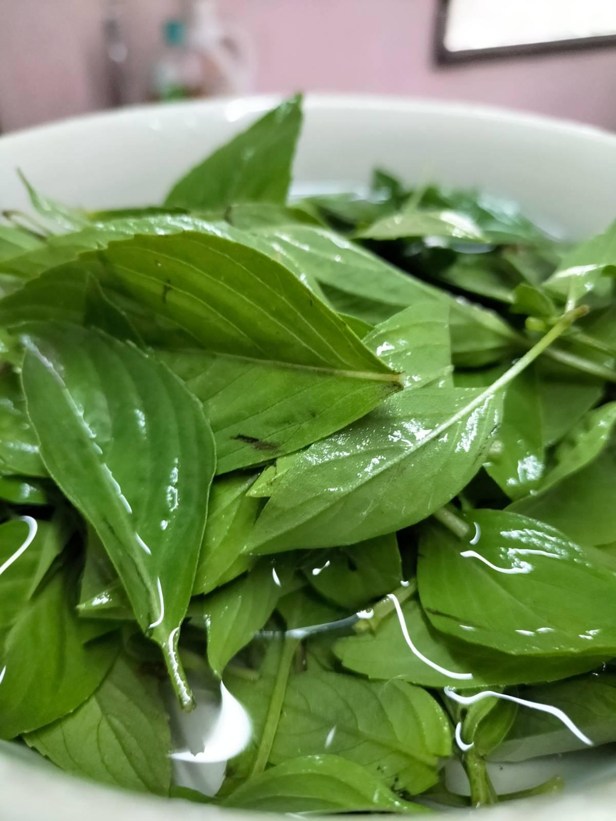 5. ใบโหระพา: 1 กำมือ