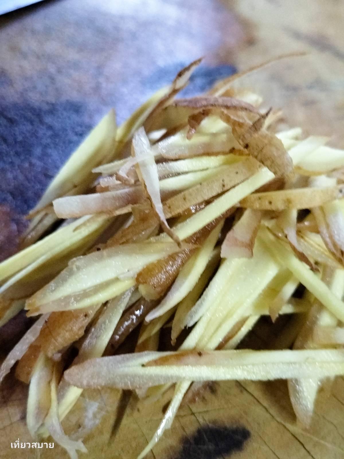 2.กระชาย ใส่เพื่อตัดเลี่ยนลูกชิ้นและช่วยชูรสพริกแกงให้เด่นขึ้น ทั้งช่วยขับลม ย่อยอาหาร และแก้ท้องอืดได้ด้วยค่ะ