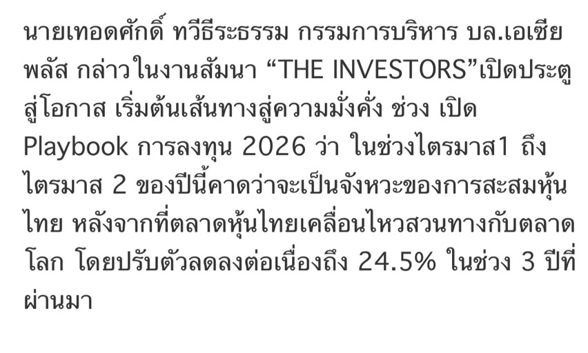กรอบการลงทุน วันที่ 26 มกราคม 2026