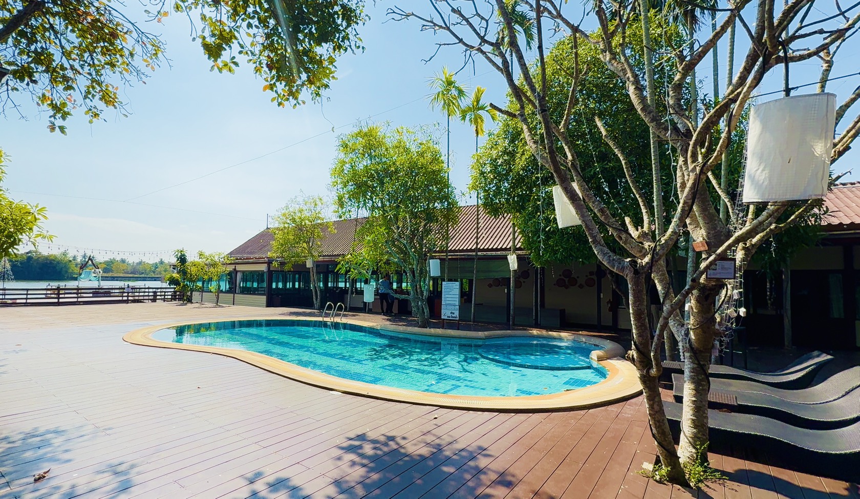 - มีสระว่ายน้ำ ติดริมน้ำ มีห้องอาหาร ห้องจัดเลี้ยงริมน้ำเลย