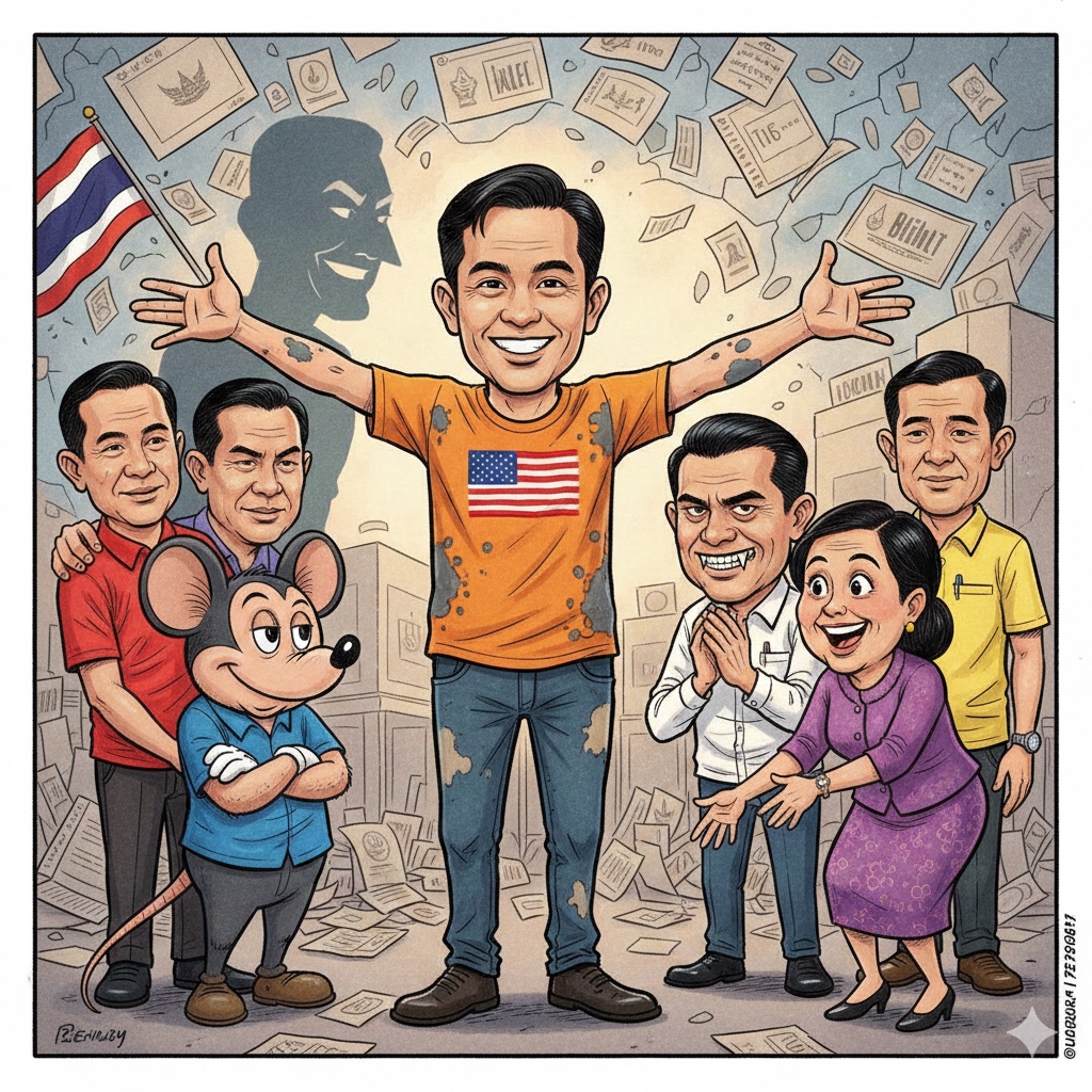 ภูมิใจไทย คิดว่า ยังไงก็ไม่มีทางที่จะจับกับส้ม นอกเสียจาก กฐินเสี่ยหนูล่ม เกิดพายุที่ปากอ่าว หล่นไปอยู่อันดับ 3 ได้ไม่ถึง 80 เก้าอี้ คุยกันง่ายๆ มีหนูไม่มีนัส ฟังชัดๆ เพิ่มพลัสไม่มีเทา เป็นรัฐบาล"ส้มพลัส" รถแห่คว่ำกันทั่วเมือง