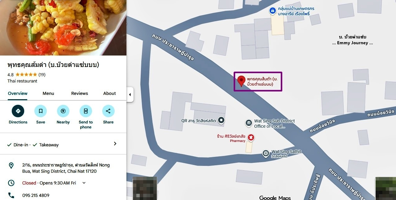 [CR] บ.บ๊วยตำแซ่บ (พุทธคุณส้มตำ) ถนนประชาราษฎร์บำรุง ตำบลวัดสิงห์ จังหวัดชัยนาท