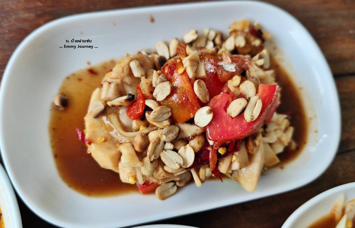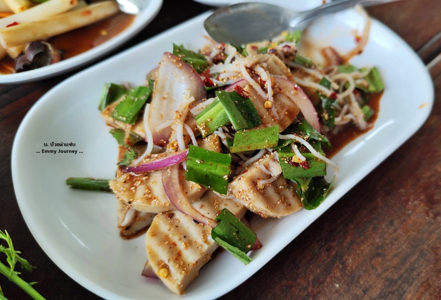 ยำขนมจีน จานละ 40 บาท ให้หมูยอมาอย่างเยอะ หมูยอแป้งเยอะไป ยำรสชาติเค็ม เปรี้ยว