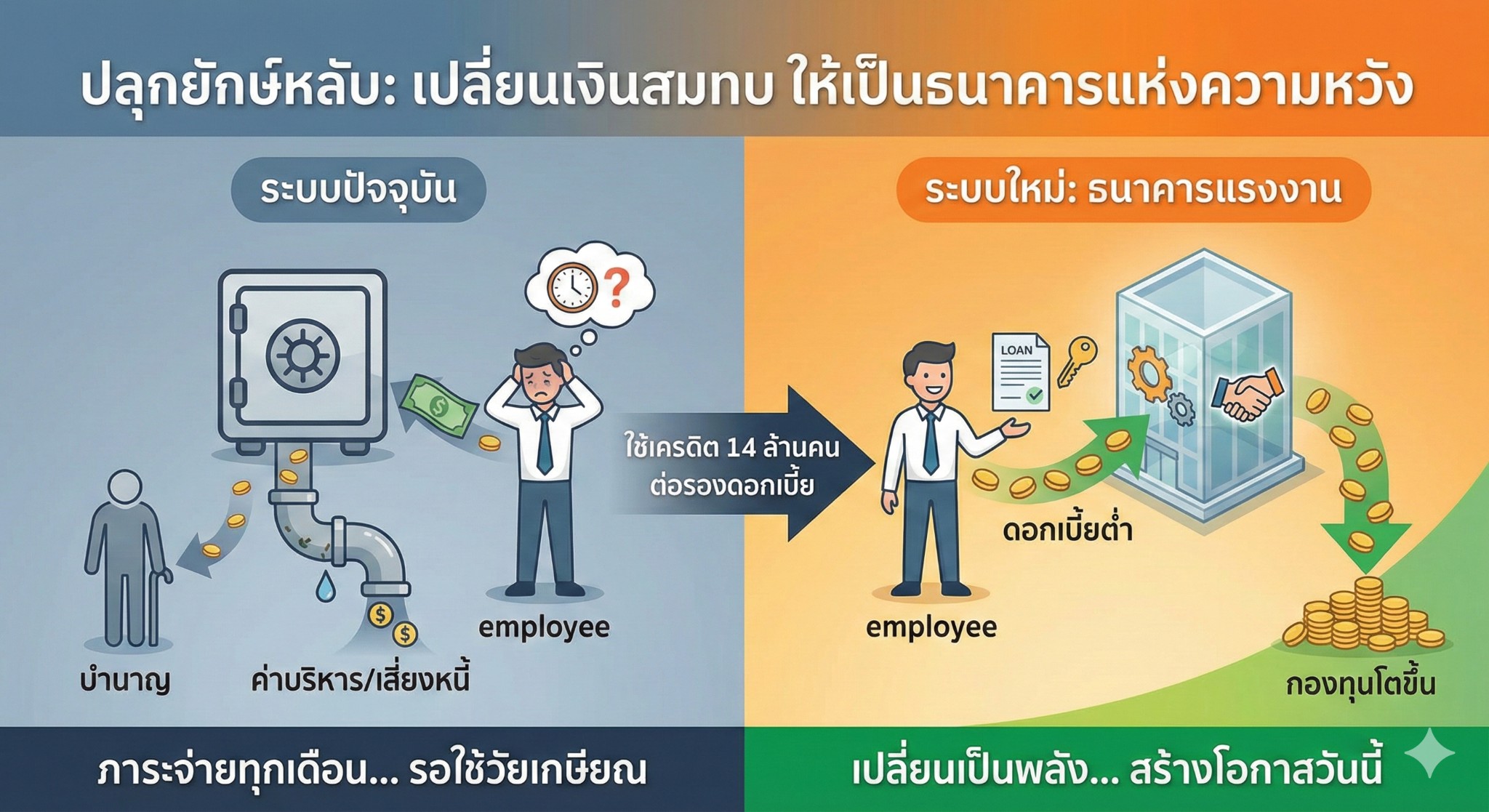 เราถูกสอนว่านี่คือ "หลักประกันยามเกษียณ" แต่คำถามคือ "เราจะมีชีวิตรอดไปถึงวันเกษียณได้อย่างไร? ถ้าวันนี้เรายังจมกองหนี้อยู่"