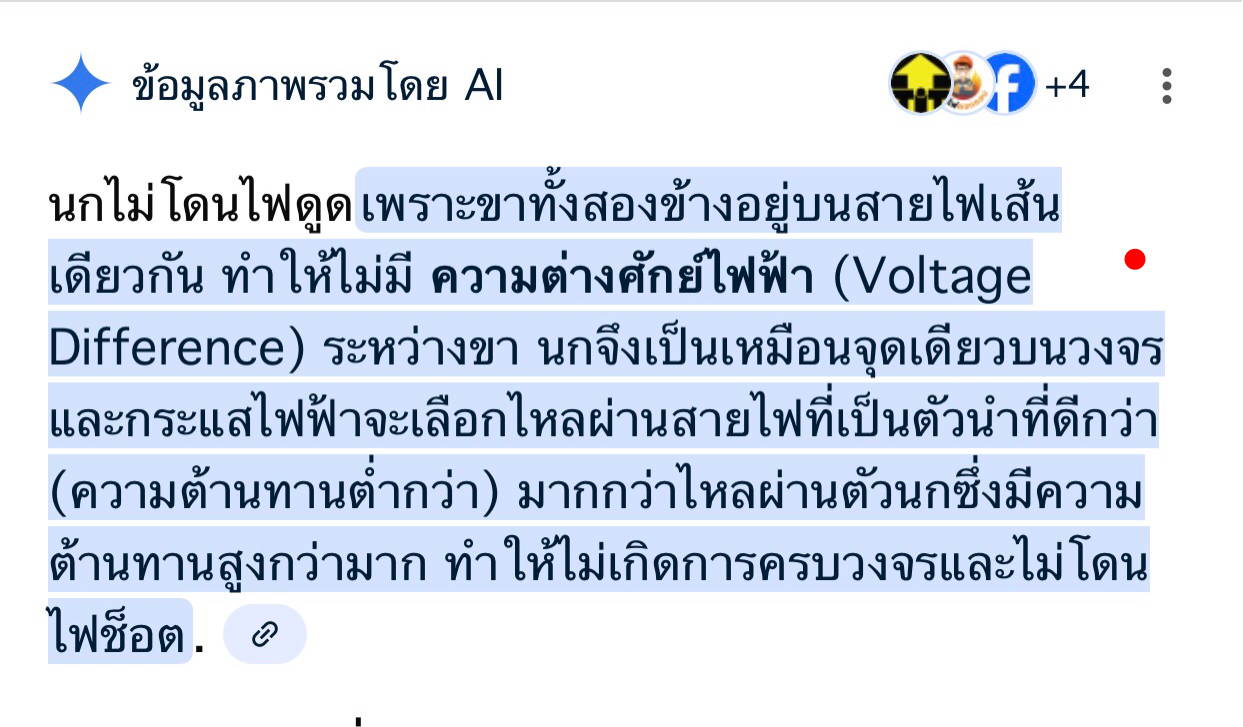 ส่วนตัวไม่เคยเห็นแหละว่า คนจะขึ้นไปยืนบนสายไฟเพียงเส้นเดียวเหมือนกับนก คำถามคือว่า > ถ้าเป็นคนยืนบนสายไฟเส้นเดียวเหมือนนก ผลที่ได้จะออกมาเหมือนนกไหมครับ