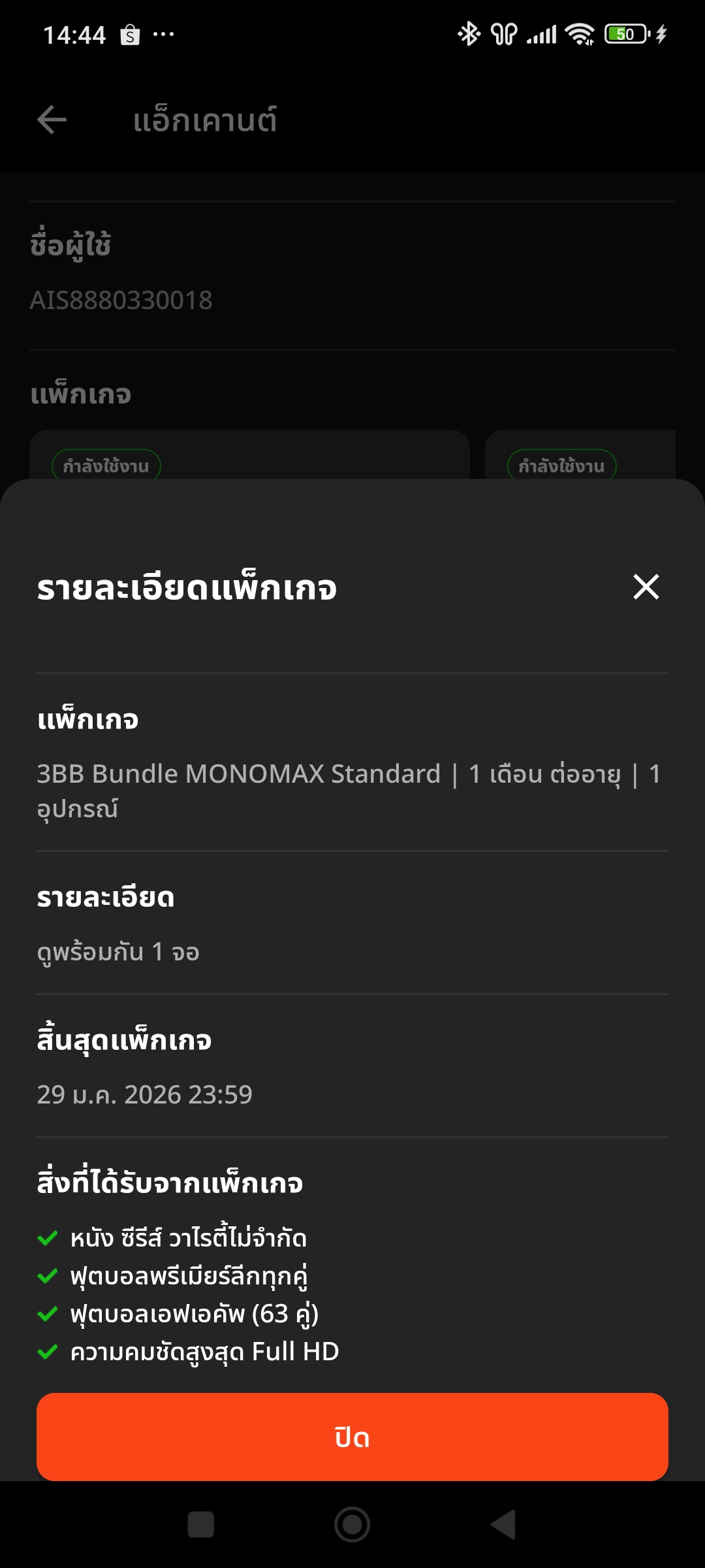 ยกเลิกแพ็คเกจดูบอลใน mono max ไม่ได้