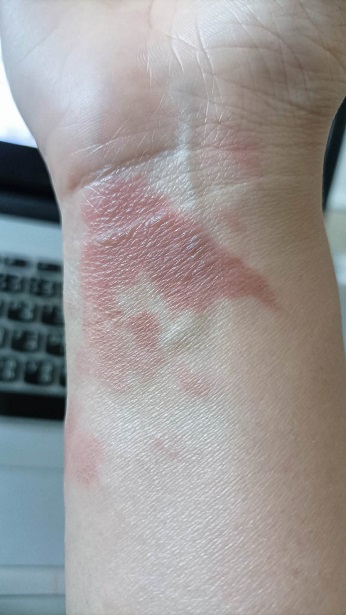 เช้าวันต่อมา ไม่มีตุ่มน้ำ ไม่มีอาการพอง คือบริเวณที่โดนมันแห้งไปเลย