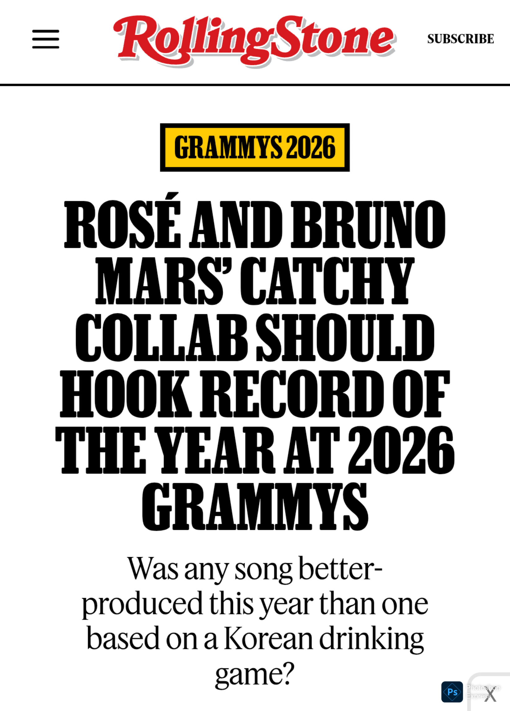Rolling Stones สื่อดนตรีที่ยิ่งใหญ่ระดับโลกทำนายว่า เพลง APT. ของ ROSE จะชนะรางวัล Grammy Awards สาขา Record of the Year