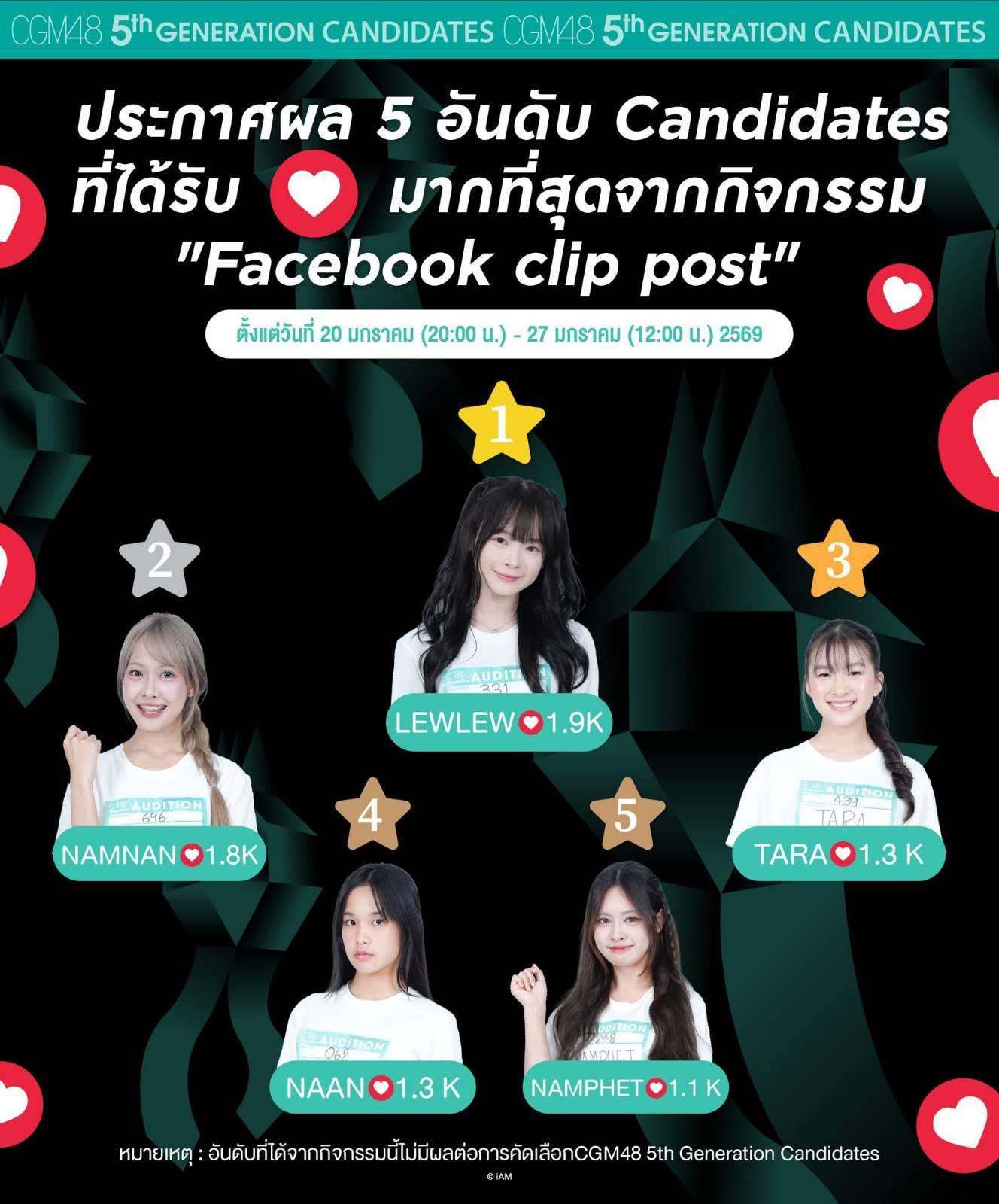 ประกาศผลโหวต Top 5 "กด Love โดนใจแคนดิเดต CGM48 รุ่น 5"