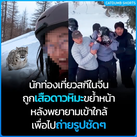 นักท่องเที่ยวถูก “เสือดาวหิมะ” โจมตีที่ลานสกี ซินเจียง [มีคลิป] หลังพยายามเข้าไปถ่ายรูปใกล้ ๆ