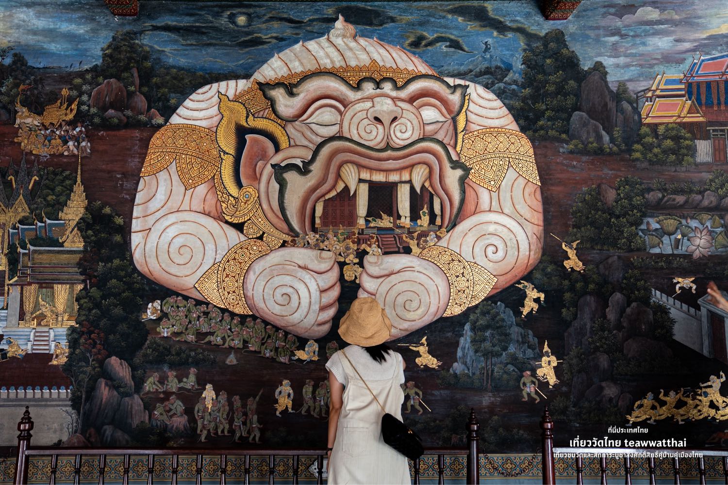 อีกหนึ่งจุดทั้งชาวไทยและต่างชาติ ที่มีโอกาสไปเยี่ยมชมวัดพระแก้ว และไม่พลาดที่จะมาถ่ายรูปจุดนี้ ซึ่งเป็นภาพวาดส่วนหนึ่งในบทละครเรื่อง “รามเกียรติ์”