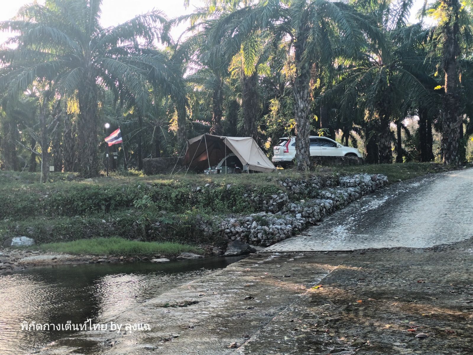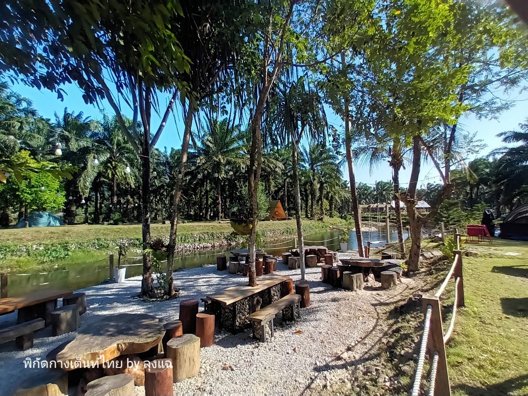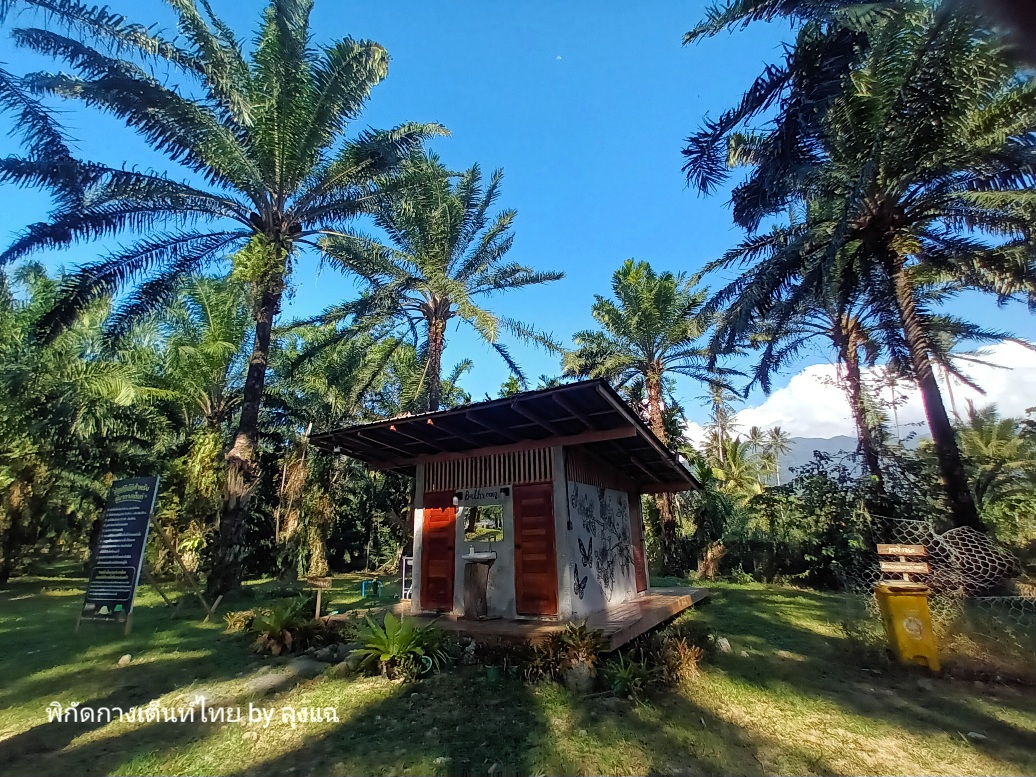 บ่าย 4 โมงกว่า แดดเริ่มอ่อนแรง ไปเดินดูลานฝั่งตรงข้ามและร้านอาหาร ห้องน้ำทำดีมาก มีที่ล้างจานชามด้วย แต่จะไกลจากที่ผมกางเกือบร้อยเมตรได้ครับ ฝั่งนั้นจะร่มรื่นทั้งวัน ด้วยอยู่ใต้ต้นปาล์มที่สูงใหญ่แล้ว แต่จุดที่ผมกางจะเห็นลำธารสวยกว่าครับ ออ บรรยากาศร้านอาหารก็ดีมากครับ