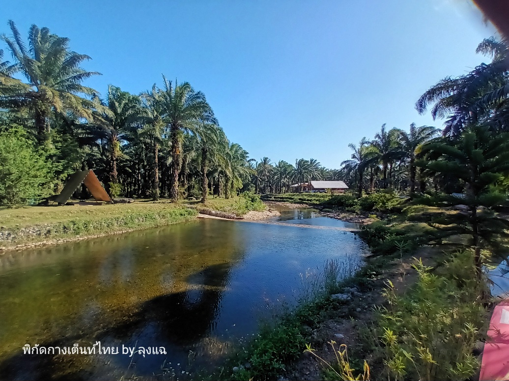 จอดรถแล้วเข้ามาทักทาย เมื่อวานผมติดต่อมาแล้ว เป็นร้านอาหารที่ดูดีริมคลองลำปินะ น้ำน้อยไปนิด แต่ยังเล่นน้ำได้ น้ำใสๆ ด้วย น้องจนท.พามาดูจุดที่กางที่มีทั้งข้ามลำธารและตรงจุดที่ไม่ต้องข้าม ตรงนี้จะเห็นลำน้ำได้ไกลกว่า สวยกว่านะ ผมว่า