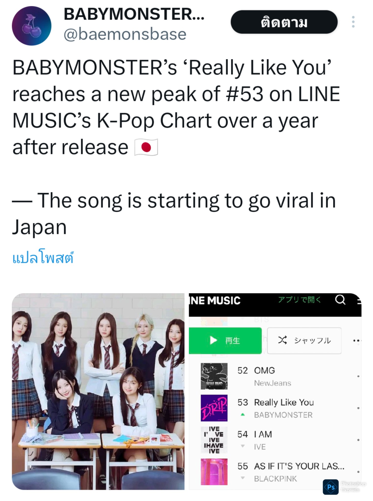 เพลง Really Like You ของ BABYMONSTER นอกจากกำลังเป็นกระแสไวรัลในเกาหลีแล้วตอนนี้ยังลามไปถึงจีนและญี่ปุ่นอีกด้วย โดยในตอนนี้
