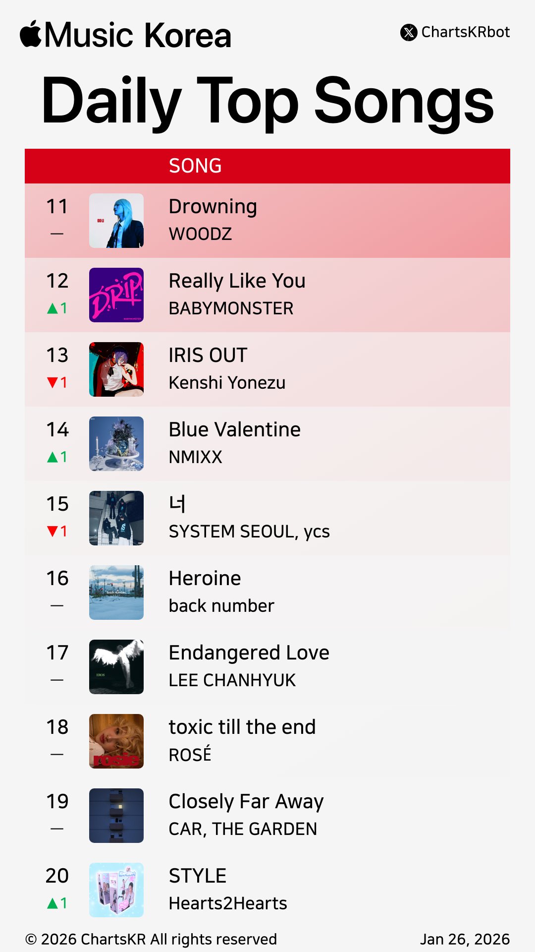 South Korea Chart ตอนนี้อยู่ที่อันดับ 12 ซึ่งแอพลิเคชั่น Apple Music นี้เป็นที่รู้กันว่าผู้ใช้ส่วนใหญ่คือวัยรุ่นชาวเกาหลีนั่นเอง