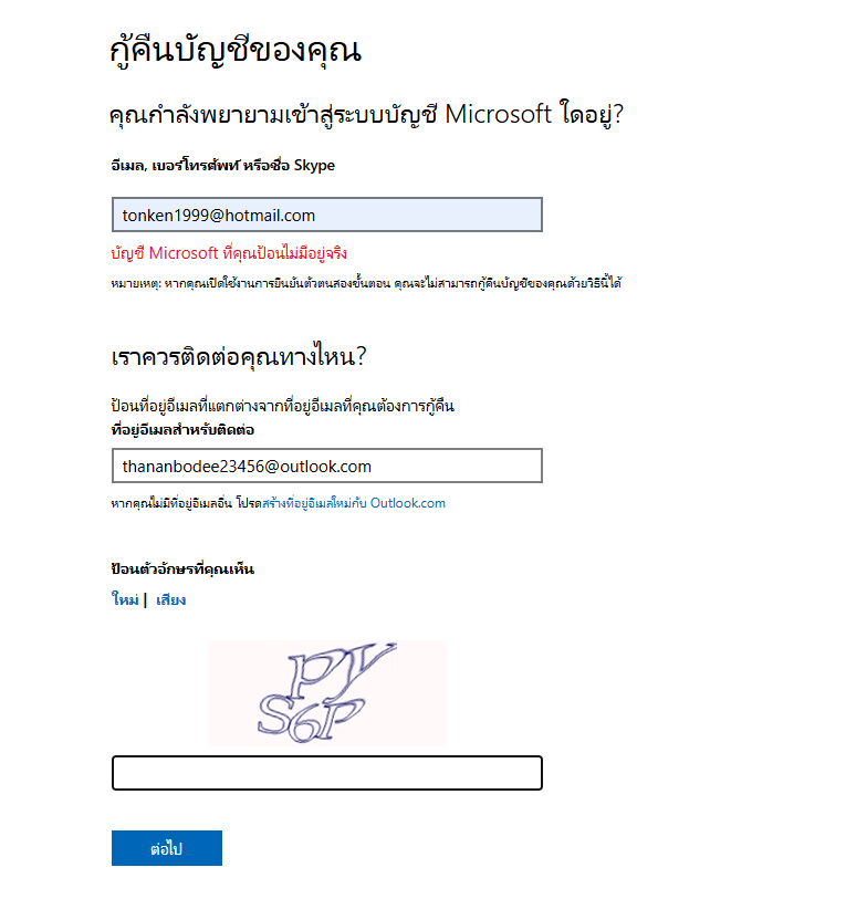 อยากดูเมลในอีเมลนี้ tonken1999@hotmail.com ทำไง เนื่องจากโดนแฮกแล้วกู้คืนมาแล้วแต่ต้องเปลี่ยนเมล